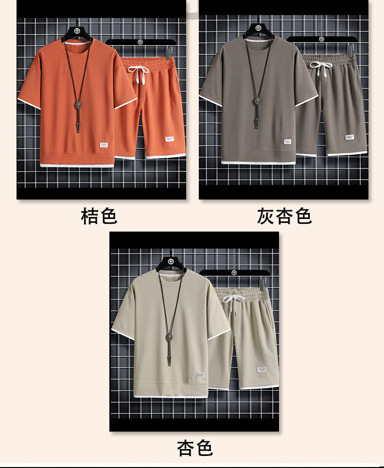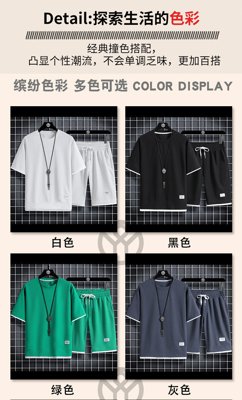 商品属性 [1] 运动 [2] 日常 [3] 短袖短裤套装 [上市年份/季节] 2025夏季 [上衣款式] T恤 [上衣袖长] 短袖 [主要下游平台] ebay,亚马逊,wish,速卖通,独立站,LAZADA,其他 [主要销售地区] 非洲,欧洲,南美,东南亚,北美,东北亚,中东,其他 [主面料成分] 聚酯纤维(涤纶) [主面料成分的含量] 100 [厚薄] 薄款 [原创设计货源] 否 [库存类型] 整单 [是否跨境出口专供货源] 是 [是否连帽] 不连帽 [有可授权的自有品牌] 否 [有无质检报告] 否 [淘货类别] 青春流行(18-24岁) [裤长] 短裤 [货源类别] 现货 [质检报告编号] / [适合季节] 夏季 [适用场景] 休闲 [面料名称] 牛奶丝 [风格] 中性