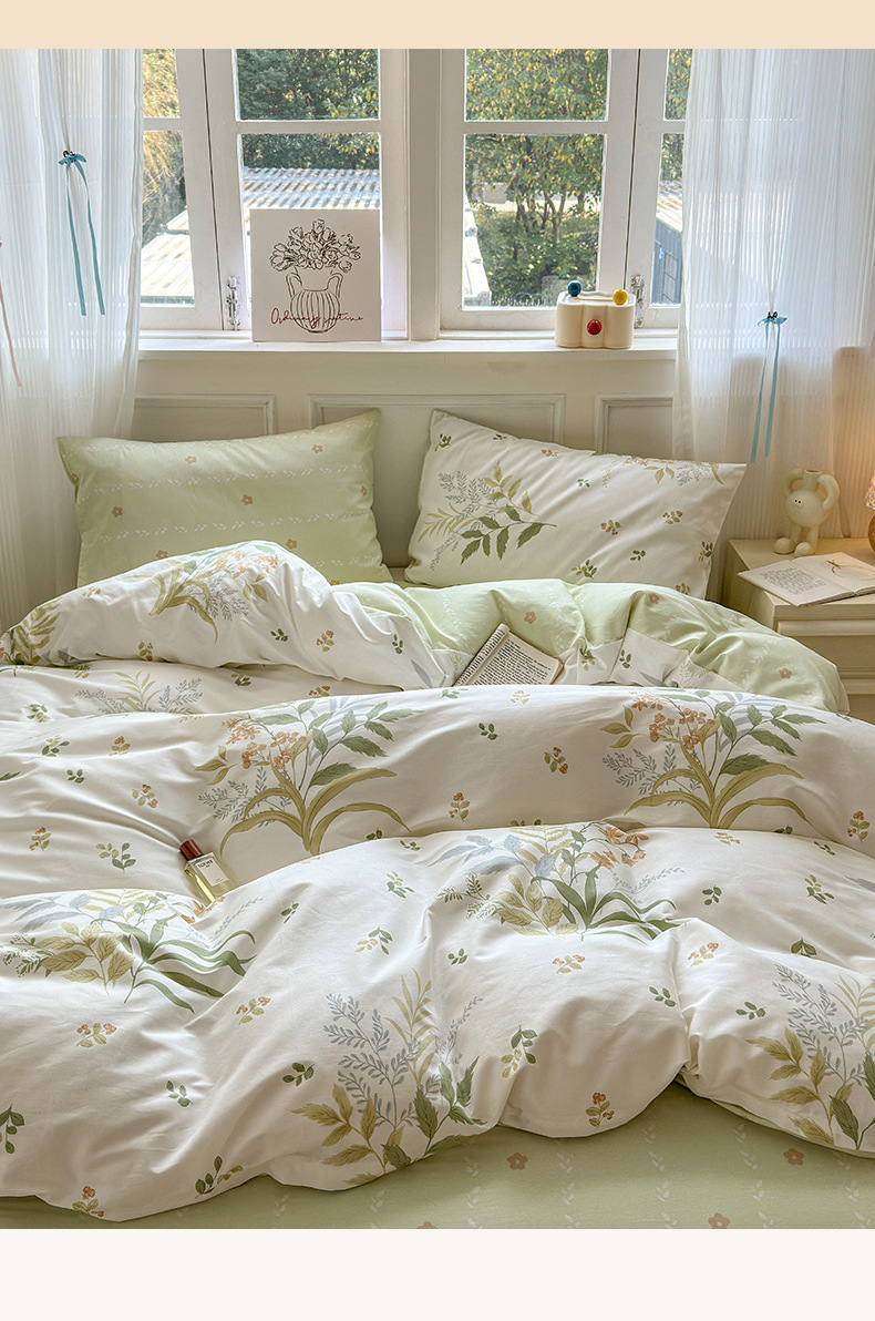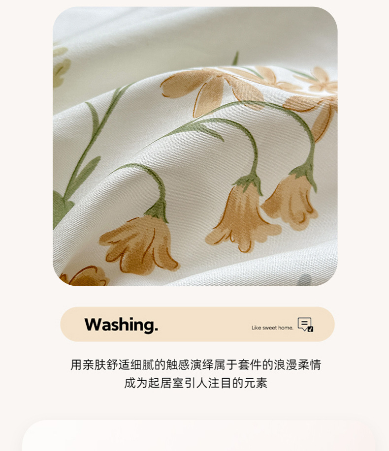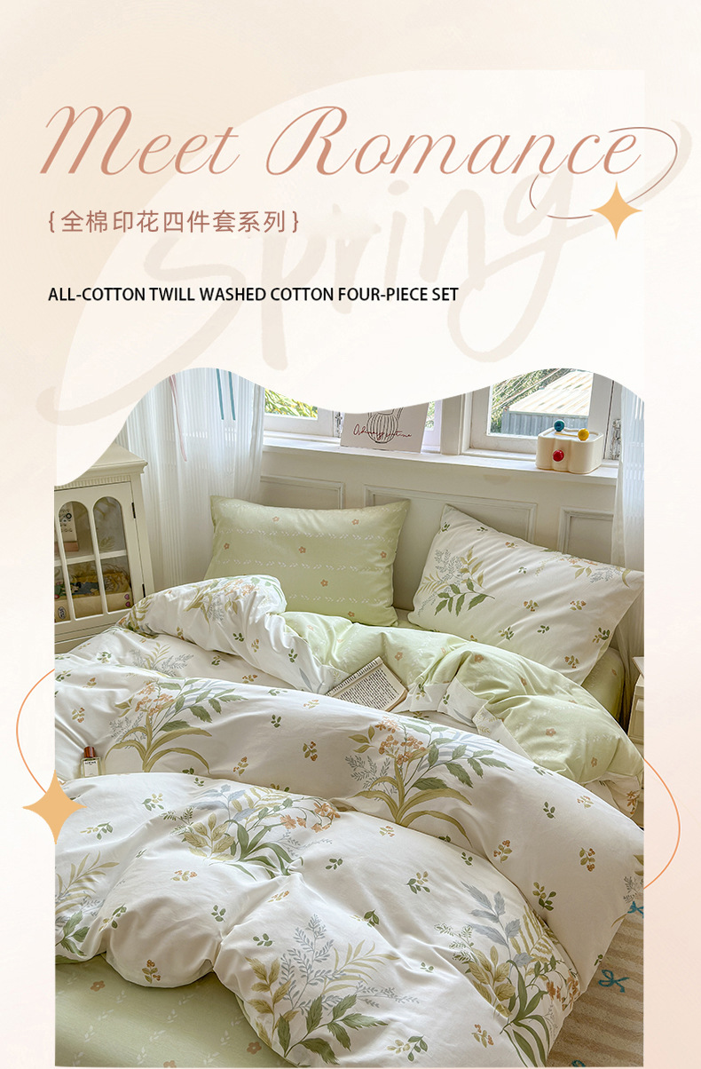 商品属性 [克重] 500g(含)~800g(不含) [加工定制] 是 [印染工艺] 活性印染 [图案] 纯色,植物花卉 [是否一般纳税人] 否 [材质] 棉 [款式] 床笠式 [织造工艺] 斜纹 [风格] ins风