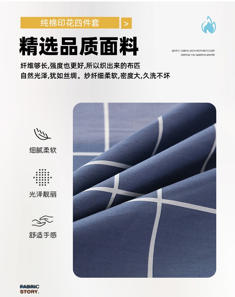 商品属性 [印染工艺] 活性印染 [是否一般纳税人] 否 [材质] 纯棉 [款式] 床单式 [织造工艺] 斜纹 [适用床尺寸] 2.0m(6.6英尺)床 [风格] 现代简约