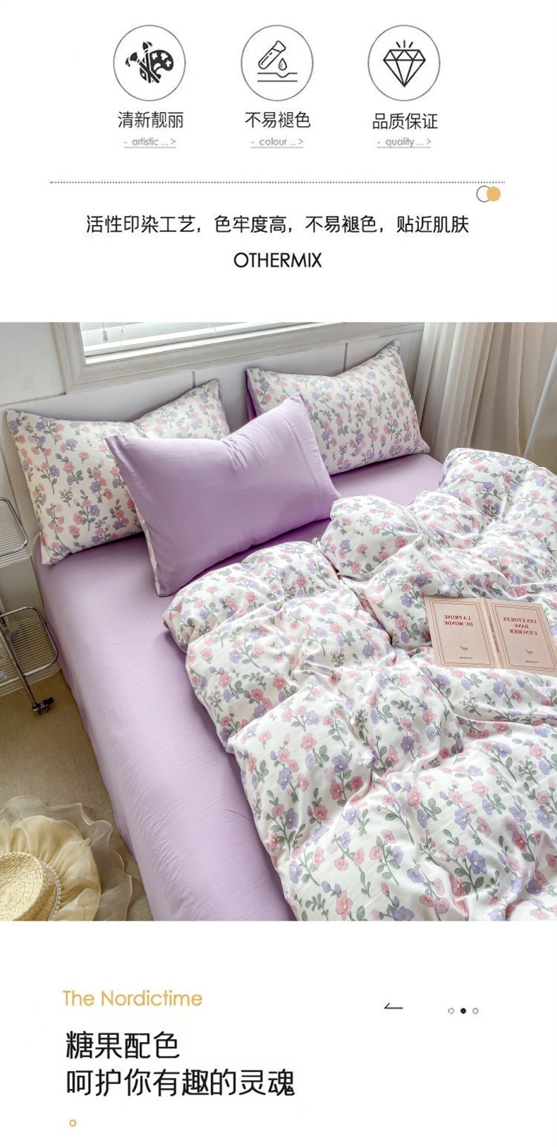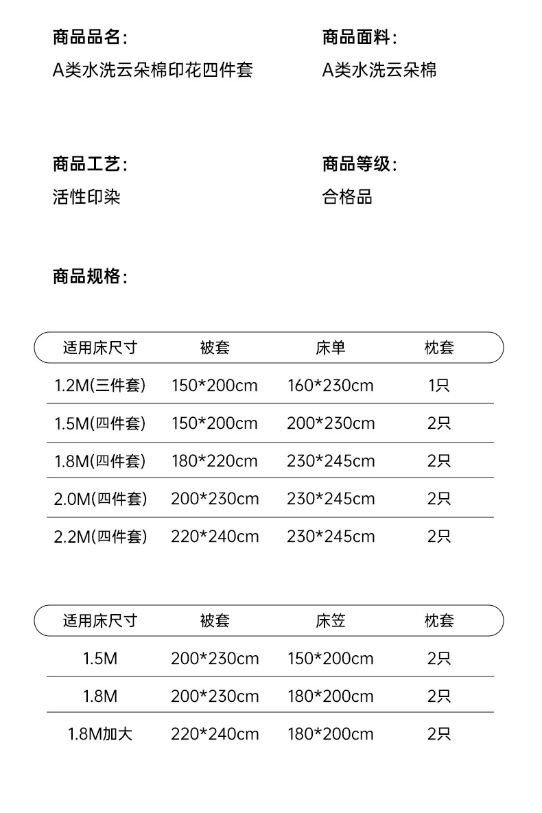 商品属性 [克重] 1500g(含)~2000g(不含) [加工定制] 否 [印染工艺] 活性印染 [图案] 几何图案,植物花卉 [是否一般纳税人] 是 [材质] 水洗棉 [款式] 床单式 [织造工艺] 水洗 [风格] ins风