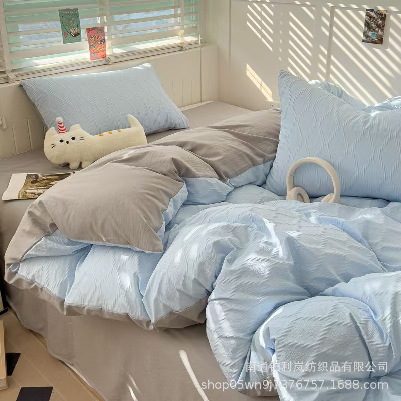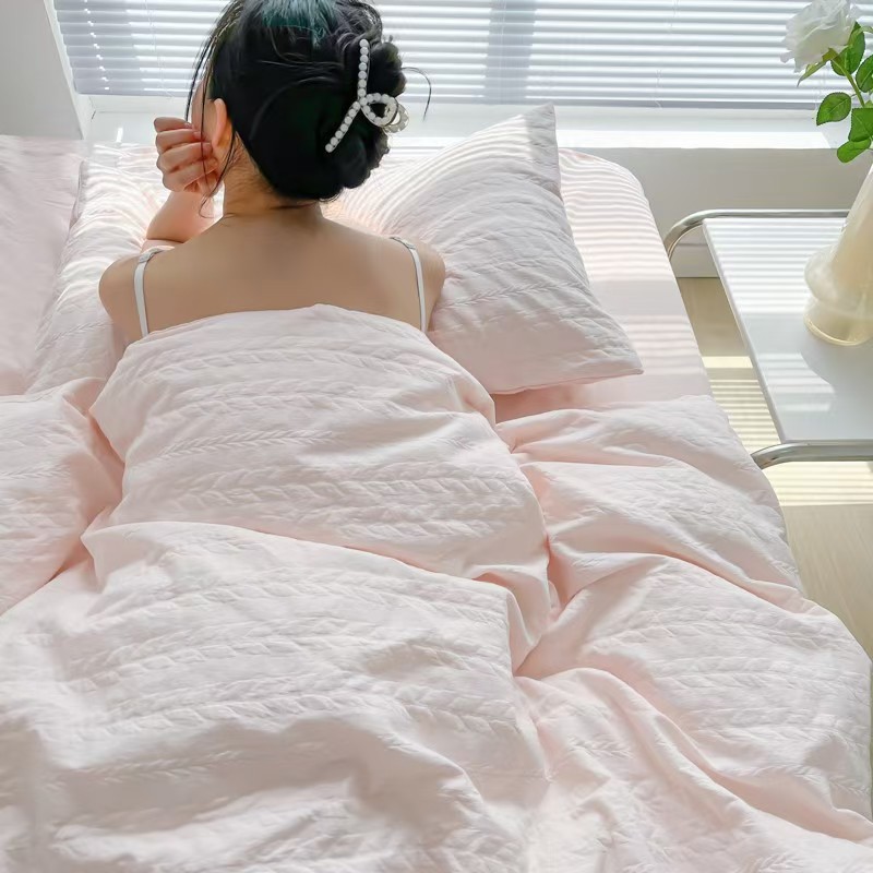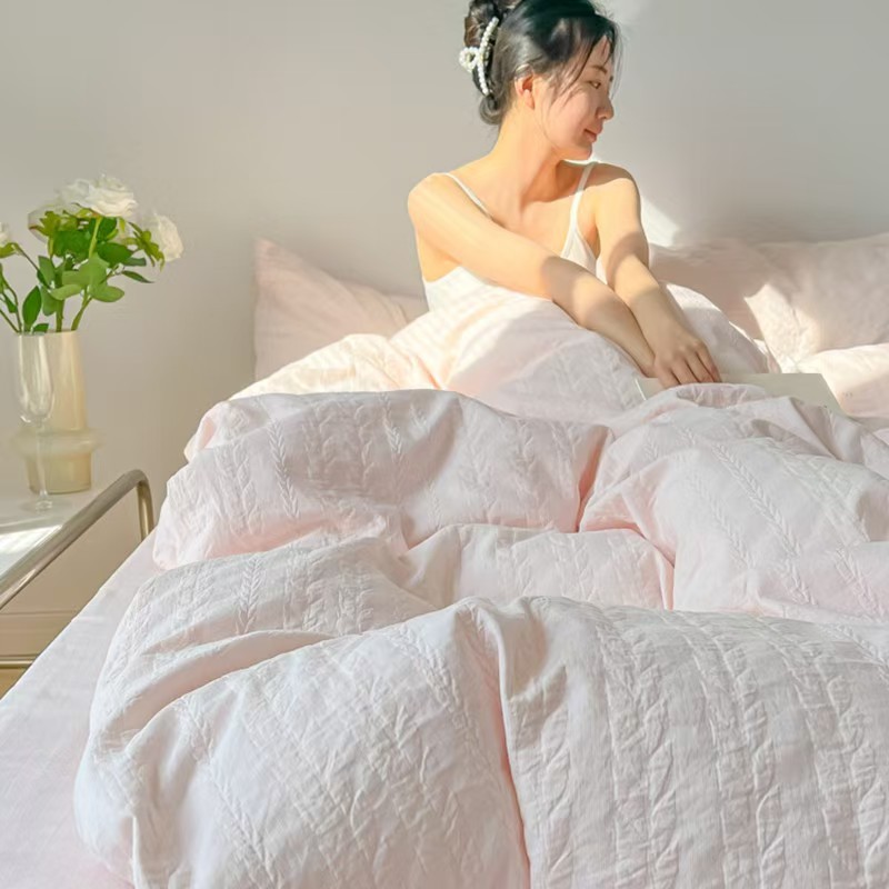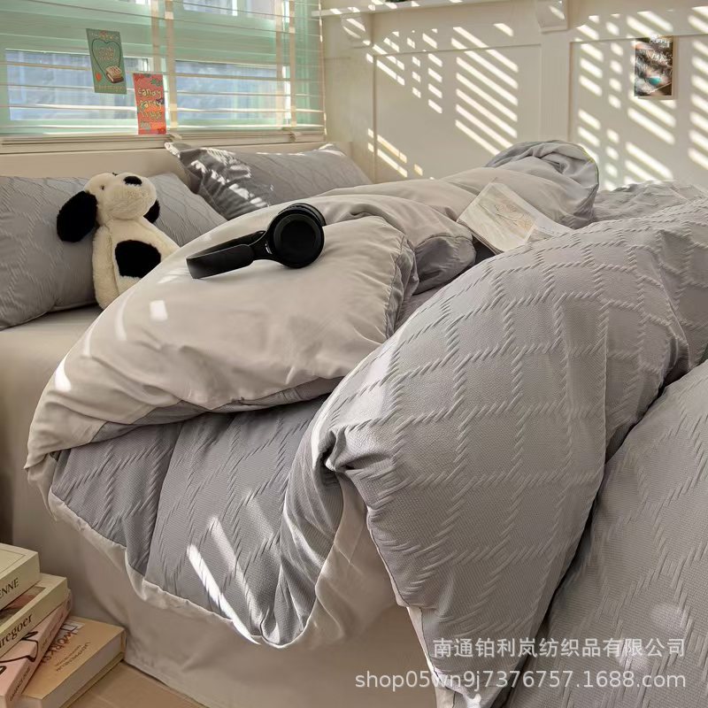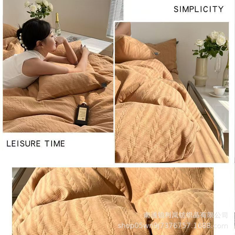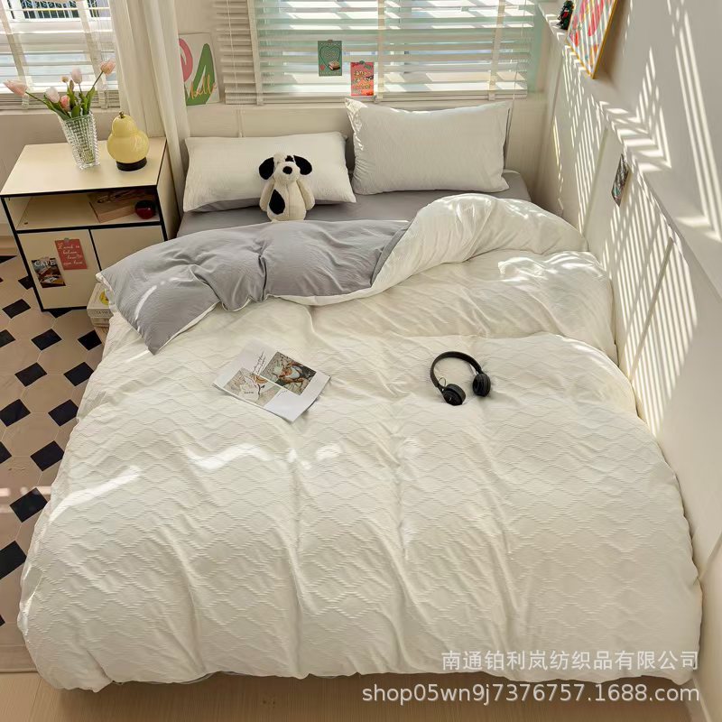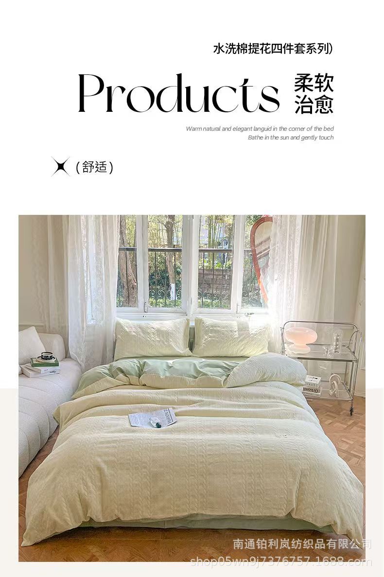 新品亲肤柔软时尚雕花四件套全棉水洗棉套件床单床笠学生宿舍床品大量现货速发