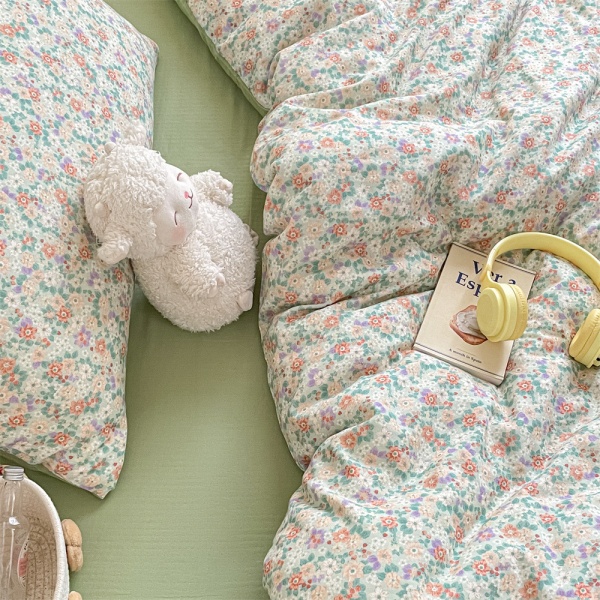 商品属性 [克重] 500g(含)~800g(不含) [加工定制] 否 [印染工艺] 活性印染 [双层纱四件套60支] 双层纱四件套a类母婴级 [双层纱四件套纯棉] 双层纱四件套全棉a类 [双层纱布四件套] 双层纱四件套皱皱纱 [图案] 条纹,纯色,几何图案,千鸟格,抽象画,卡通动漫,植物花卉,萌趣动物 [是否一般纳税人] 否 [材质] 纯棉 [款式] 床单式 [织造工艺] 印花 [面料支数] 60支 [风格] 田园风