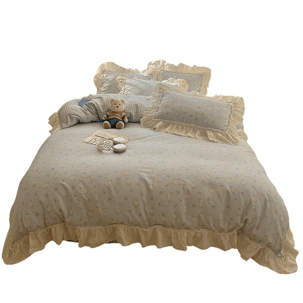 商品属性 [克重] 500g(含)~800g(不含) [加工定制] 否 [印染工艺] 活性印染 [图案] 条纹,纯色,几何图案,千鸟格,抽象画,卡通动漫,植物花卉,萌趣动物 [是否一般纳税人] 否 [材质] 纯棉 [款式] 床笠式 [法式复古风四件套] 少女心四件套 [织造工艺] 花边,印花 [面料密度] 其他/other [面料支数] 40支 [韩式四件套] 床上用品四件套 [风格] 法式