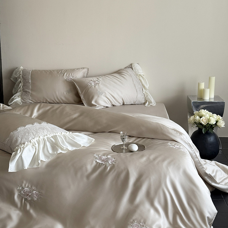商品属性 [克重] 2500g(含)-3000g(不含) [加工定制] 否 [印染工艺] 活性印染 [图案] 植物花卉 [是否一般纳税人] 否 [材质] 莱赛尔纤维 [款式] 床单式 [织造工艺] 提花 [面料支数] 60支 [风格] 公主风