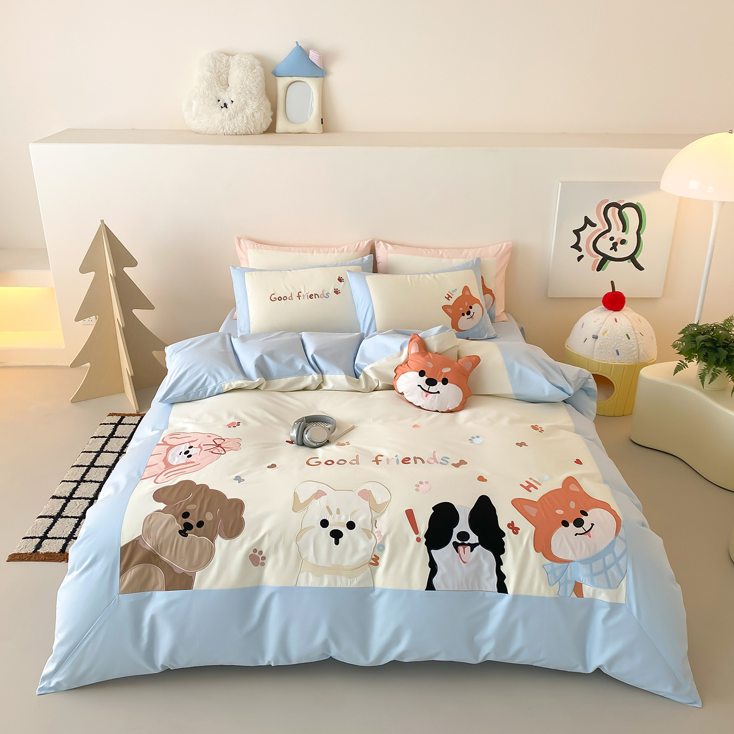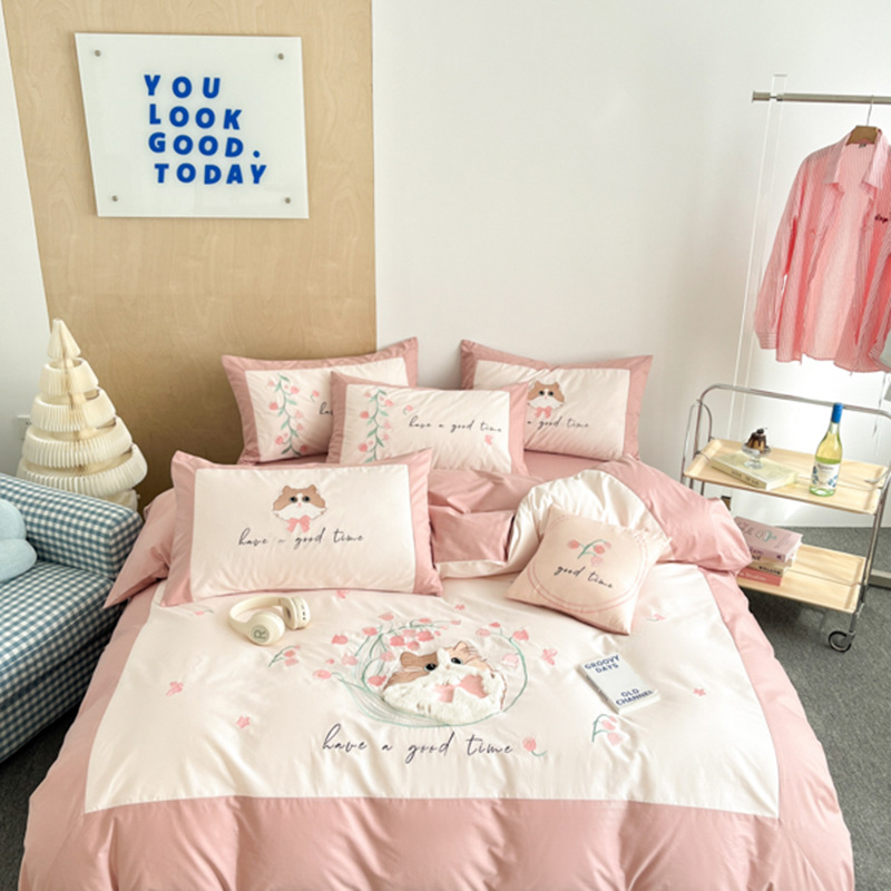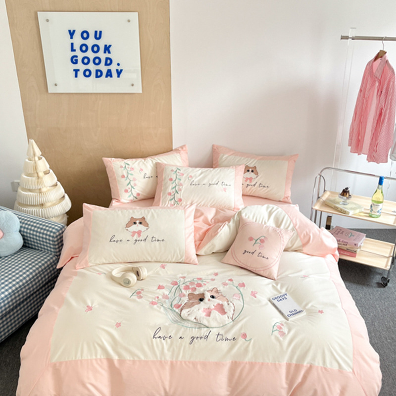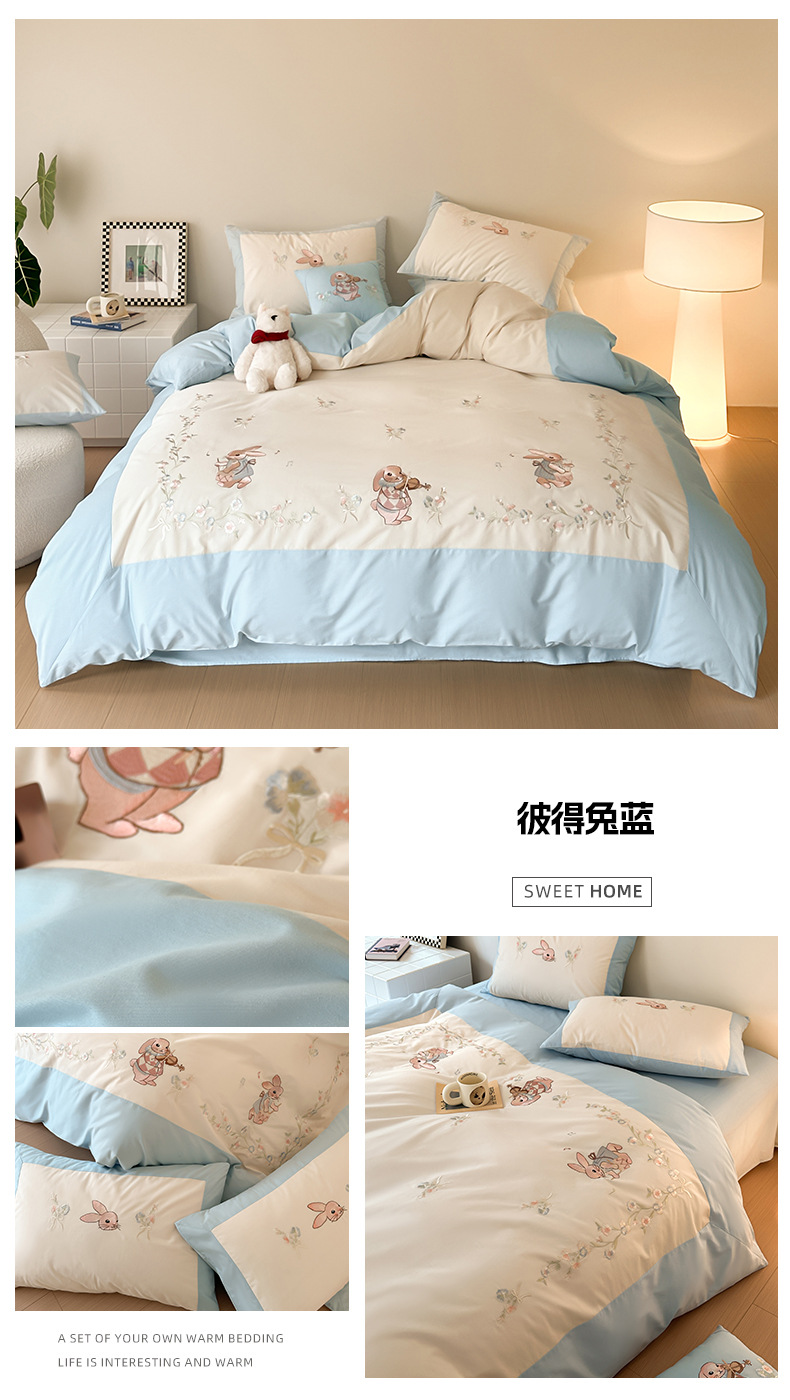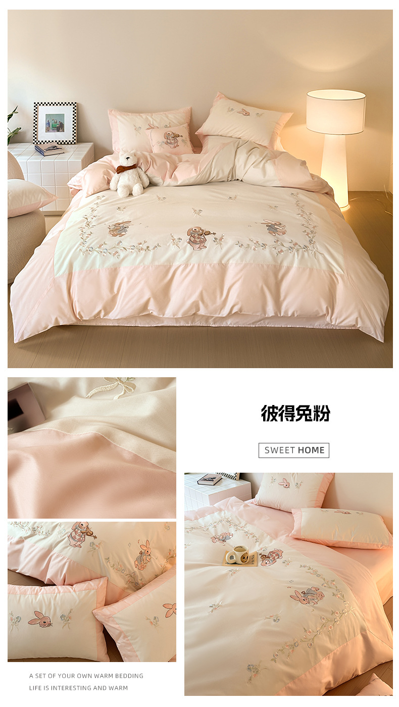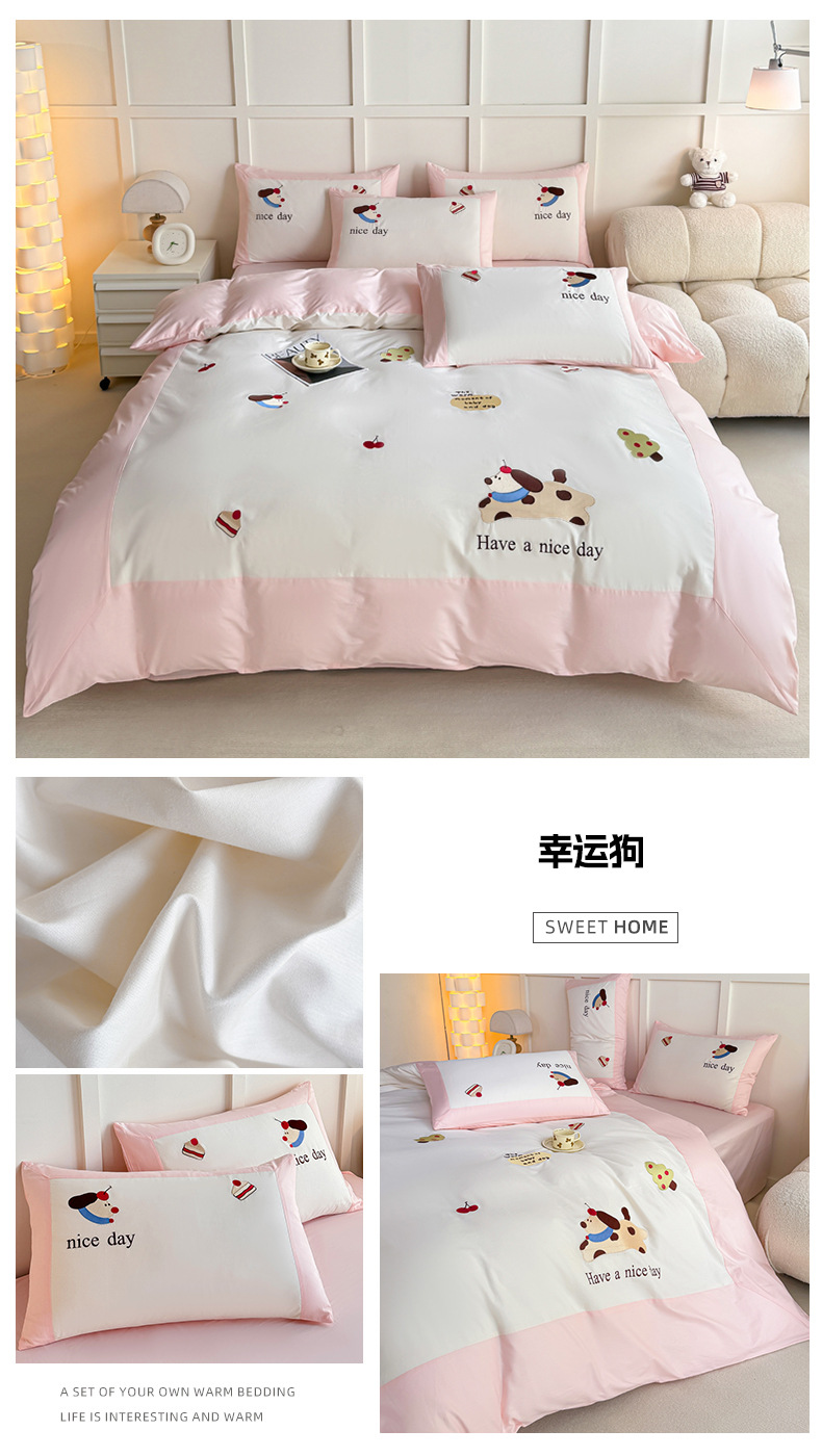 商品属性 [克重] 2500g(含)-3000g(不含) [加工定制] 否 [印染工艺] 活性印染 [图案] 卡通动漫,植物花卉 [是否一般纳税人] 否 [材质] 纯棉 [款式] 床单式 [织造工艺] 绣花 [面料支数] 60支 [风格] 公主风