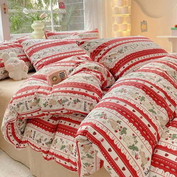 商品属性 [印染工艺] 数码印花 [图案] 几何图案,卡通动漫,植物花卉,萌趣动物 [是否一般纳税人] 是 [材质] 纯棉 [款式] 床单式 [织造工艺] 印花,斜纹 [面料支数] 60支 [风格] 田园风