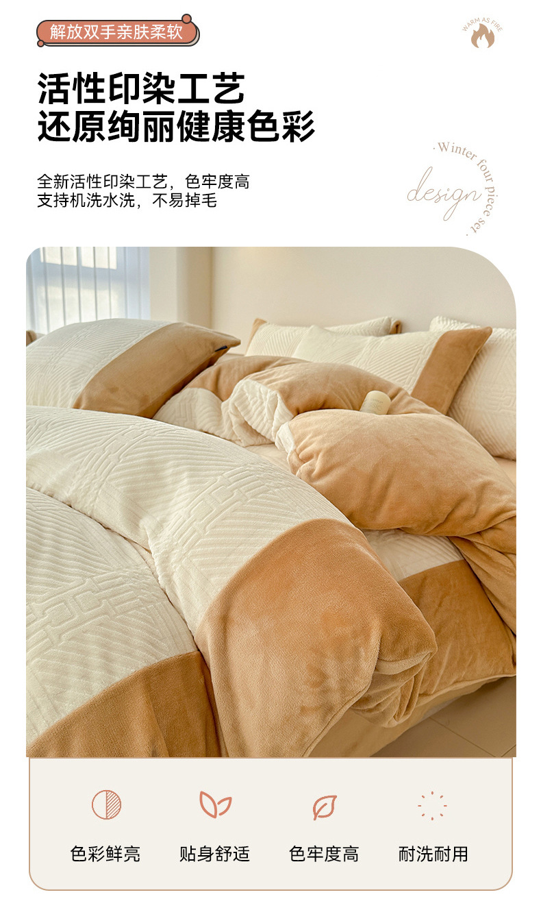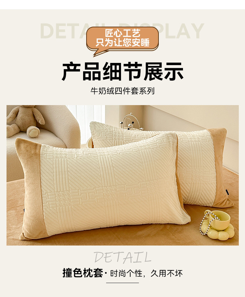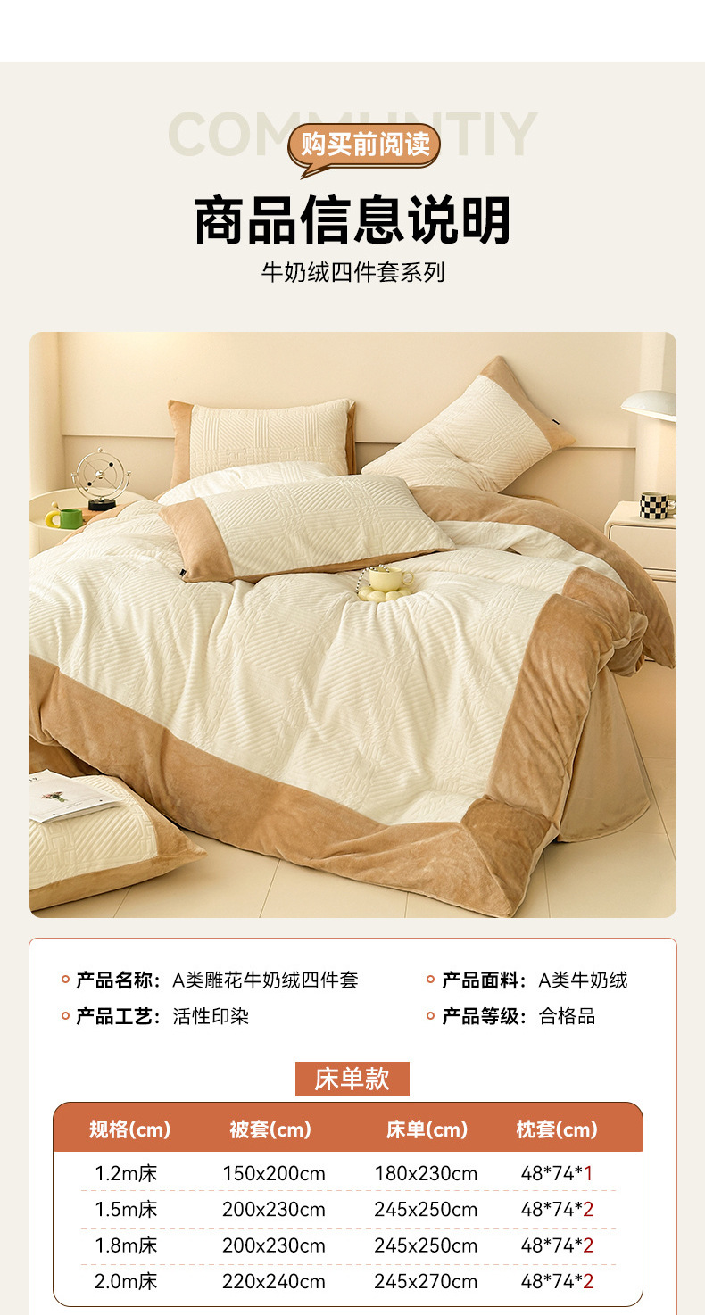 商品属性 [克重] 500g(不含)以下 [加工定制] 否 [印染工艺] 活性印染 [图案] 纯色 [是否一般纳税人] 否 [材质] 牛奶绒 [款式] 床单式 [织造工艺] 包边,印花,斜纹,绗缝 [风格] ins风