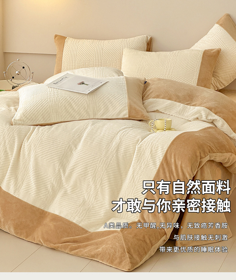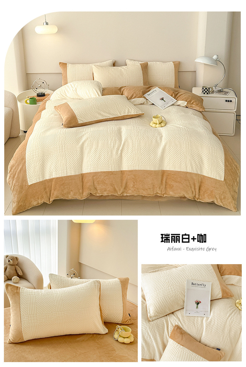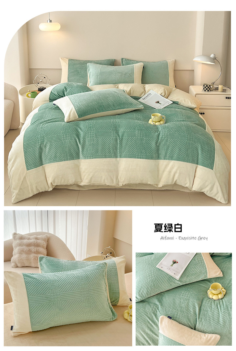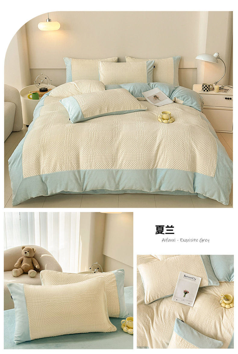 商品属性 [克重] 500g(不含)以下 [加工定制] 否 [印染工艺] 活性印染 [图案] 纯色 [是否一般纳税人] 否 [材质] 牛奶绒 [款式] 床单式 [织造工艺] 包边,印花,斜纹,绗缝 [风格] ins风