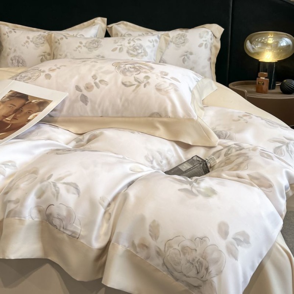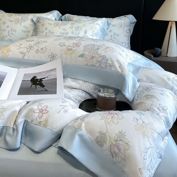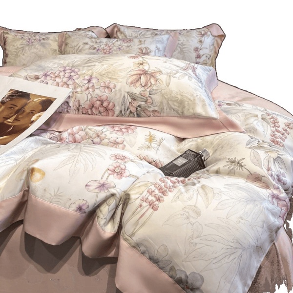 商品属性 [印染工艺] 扎染 [图案] 植物花卉 [材质] 天丝(莱赛尔纤维) [款式] 床单式 [织造工艺] 包边 [风格] 轻奢