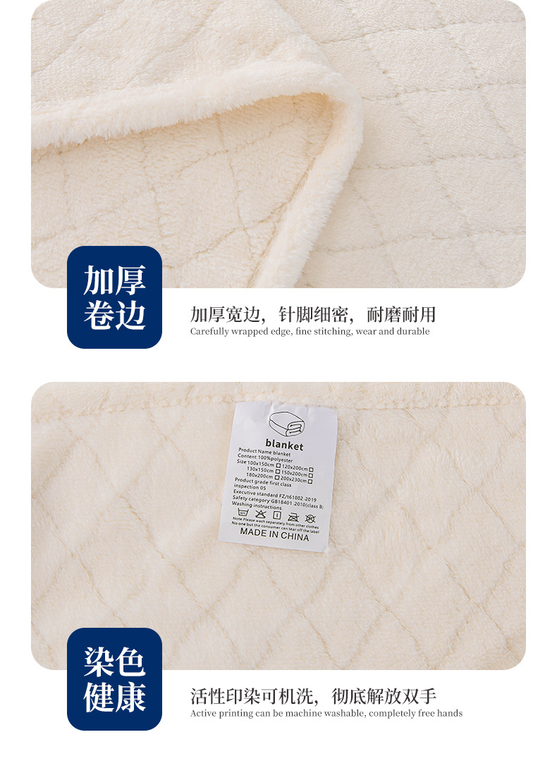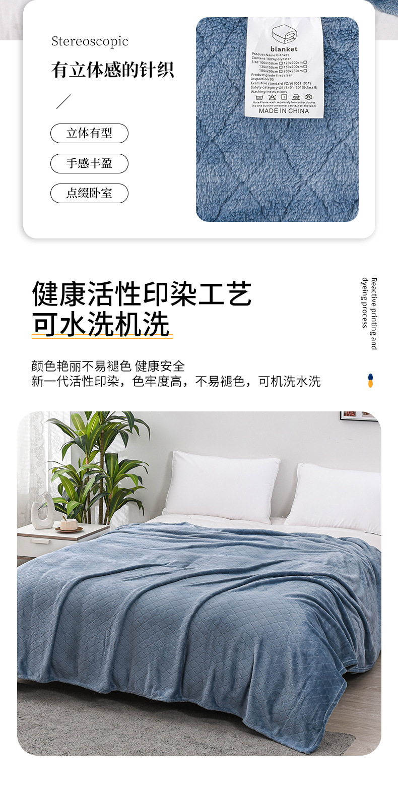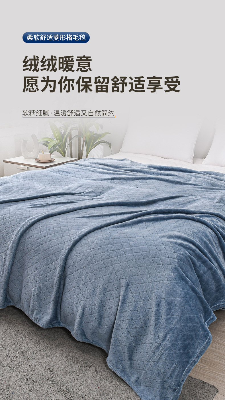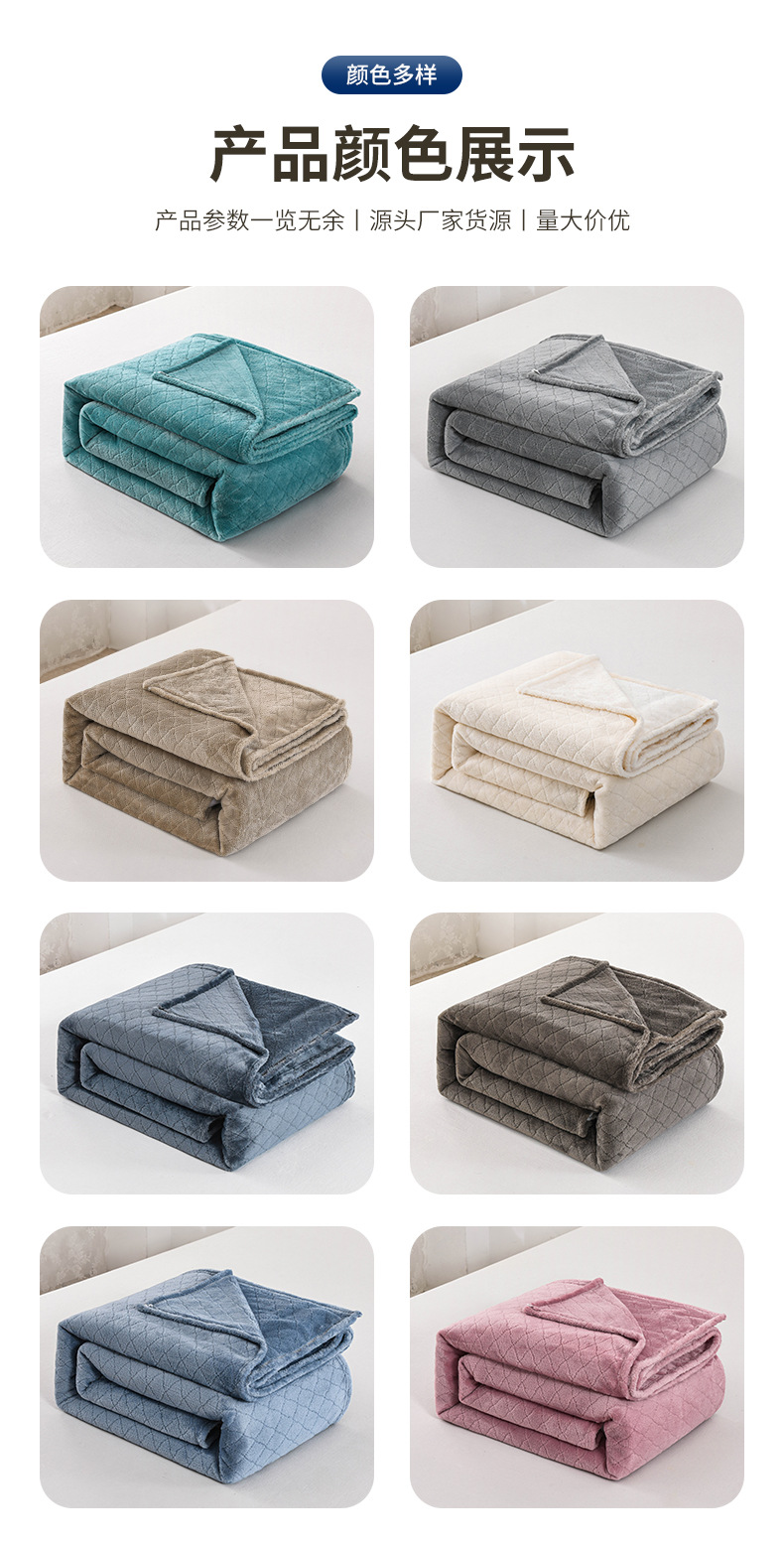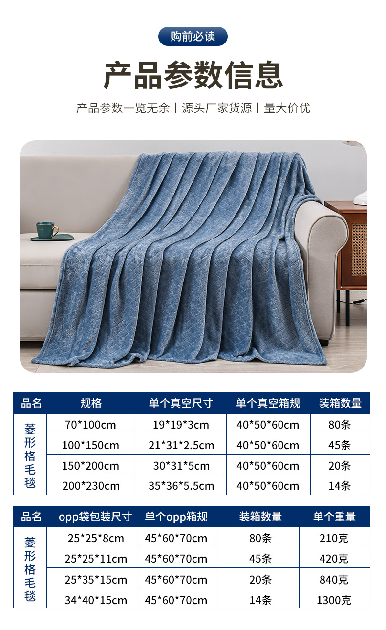 商品属性 [克重] 300g(含)~500g(不含) [加工定制] 是 [图案] 纯色 [是否一般纳税人] 是 [材质] 聚酯纤维(涤纶) [毯类型] 法兰绒毯 [适用季节] 四季通用 [风格] 现代简约
