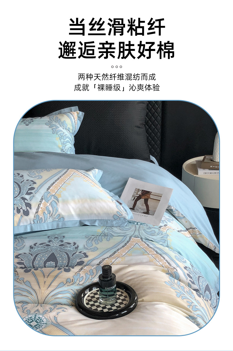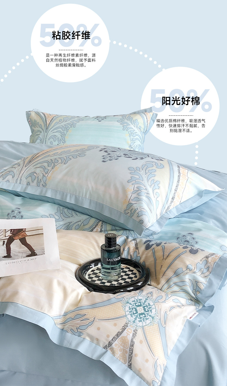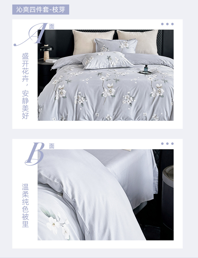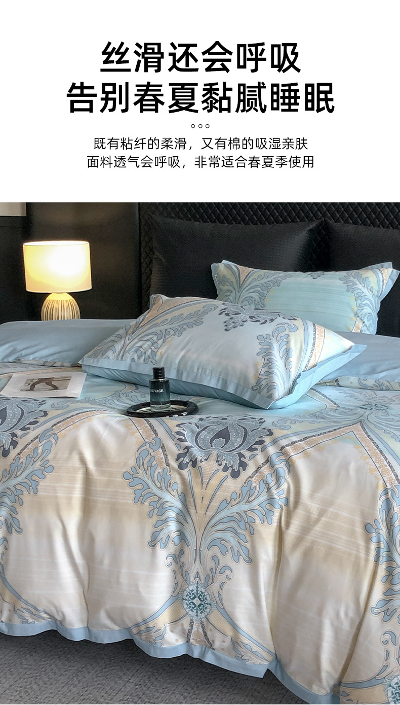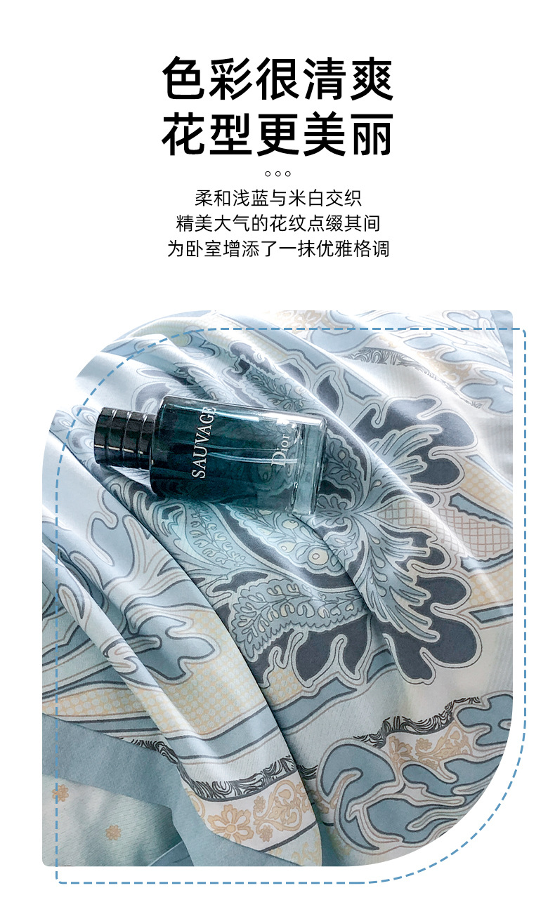 商品属性 [克重] 2000g(含)~2500g(不含) [加工定制] 是 [印染工艺] 活性印染 [图案] 植物花卉 [是否一般纳税人] 是 [材质] 再生纤维素纤维 [款式] 床单式 [织造工艺] 印花,斜纹 [风格] 轻奢