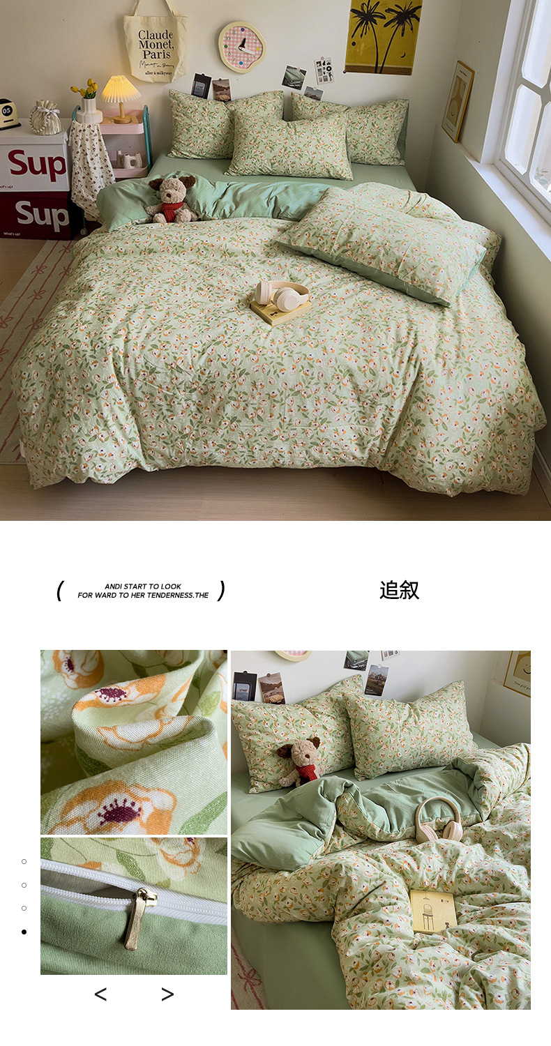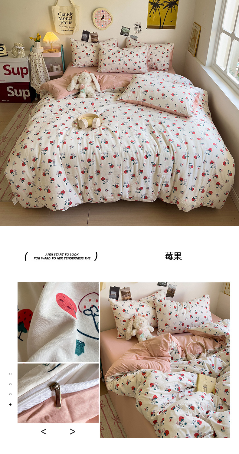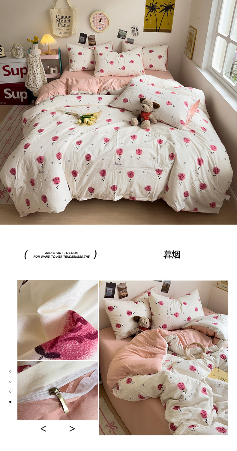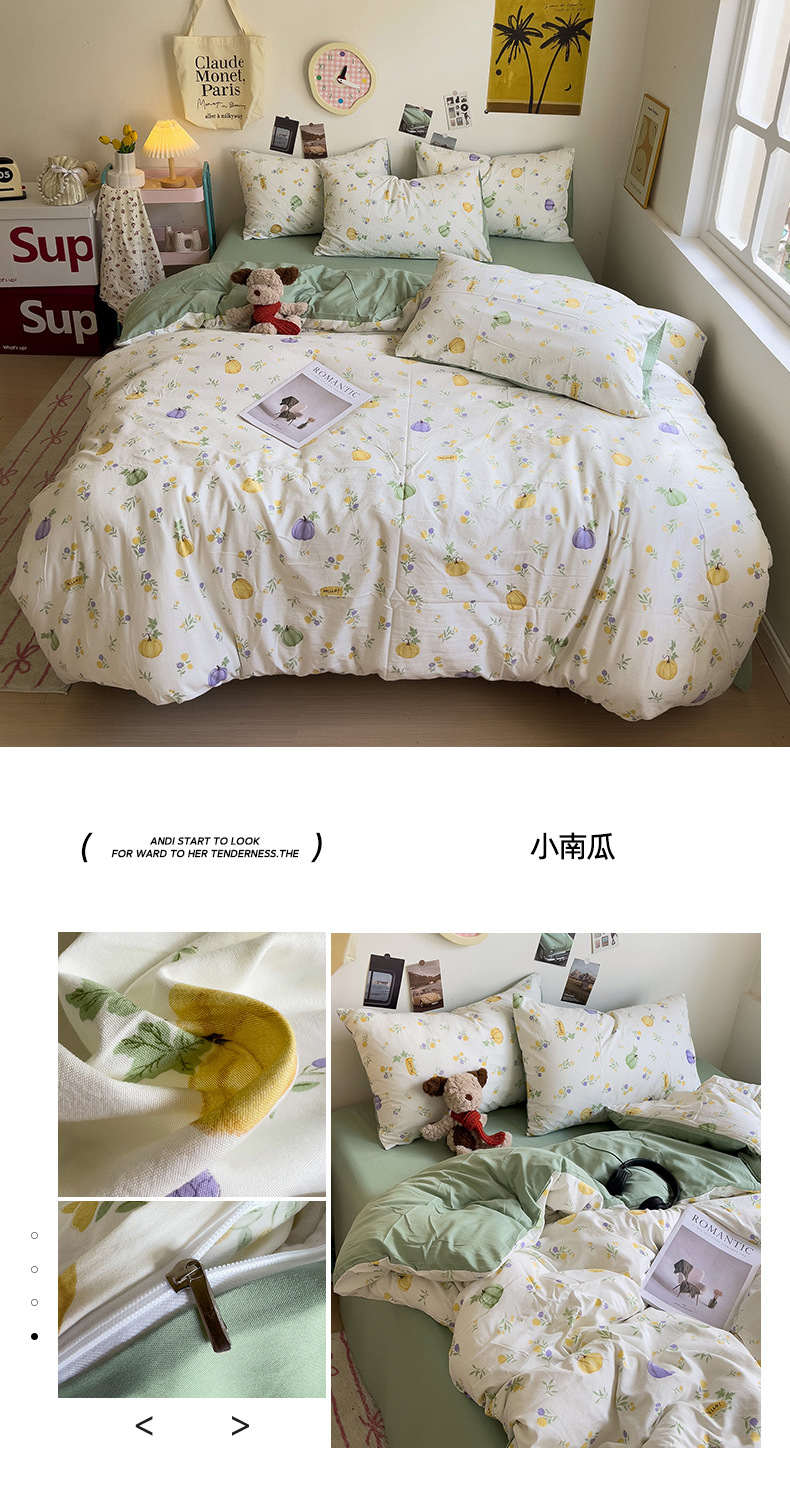 商品属性 [克重] 500g(不含)以下 [加工定制] 是 [印染工艺] 活性印染 [图案] 卡通动漫,植物花卉 [是否一般纳税人] 是 [材质] 纯棉 [款式] 床单式 [织造工艺] 水洗,印花 [面料支数] 60支 [风格] ins风