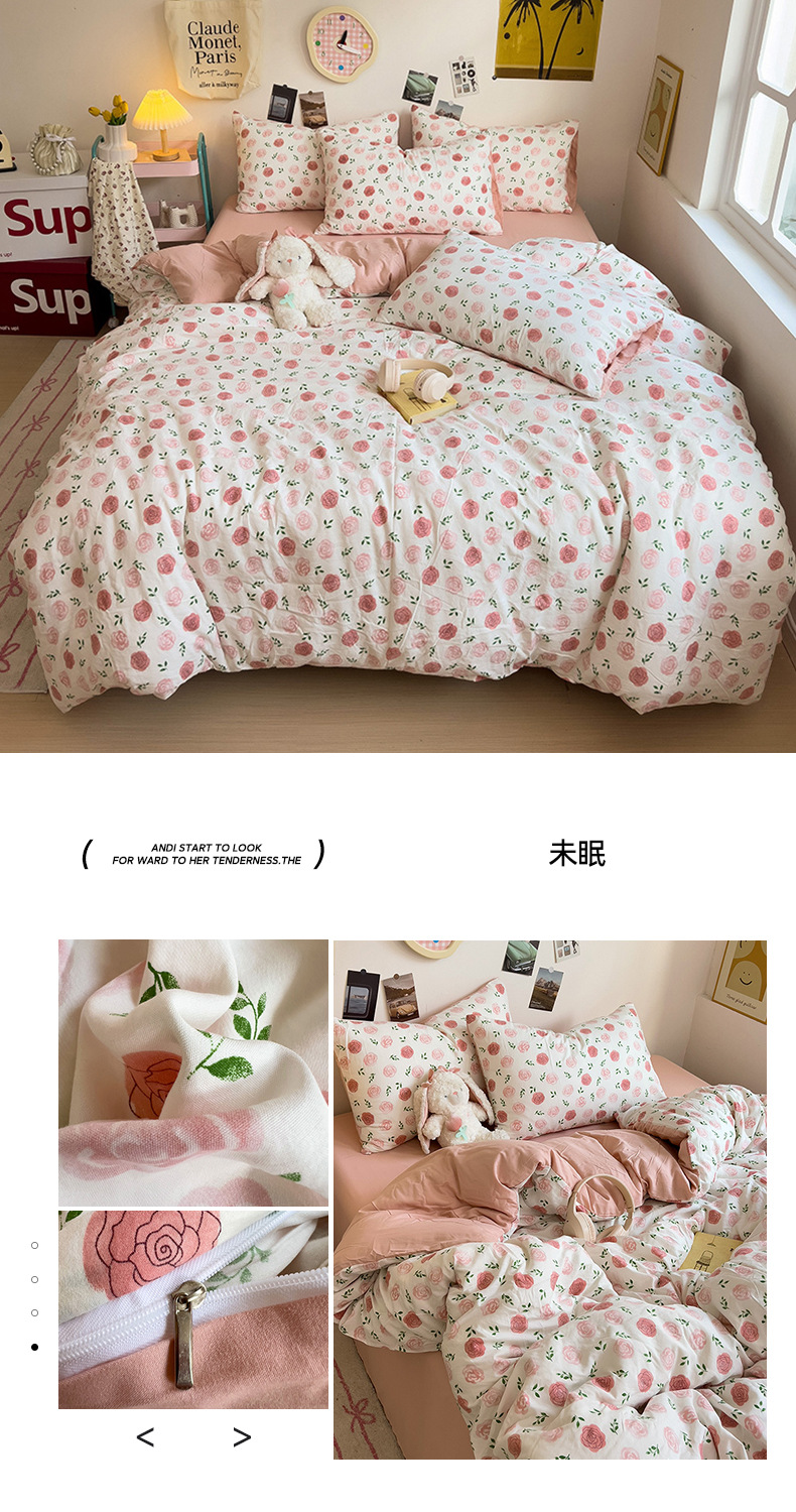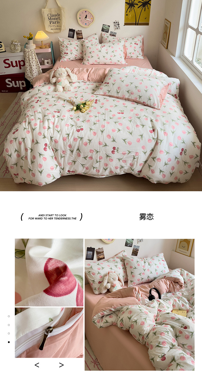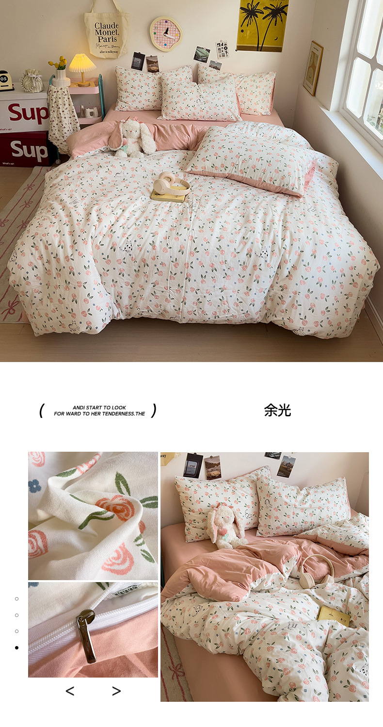 商品属性 [克重] 500g(不含)以下 [加工定制] 是 [印染工艺] 活性印染 [图案] 卡通动漫,植物花卉 [是否一般纳税人] 是 [材质] 纯棉 [款式] 床单式 [织造工艺] 水洗,印花 [面料支数] 60支 [风格] ins风
