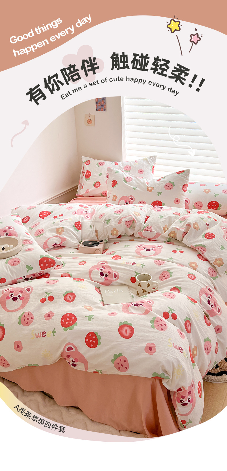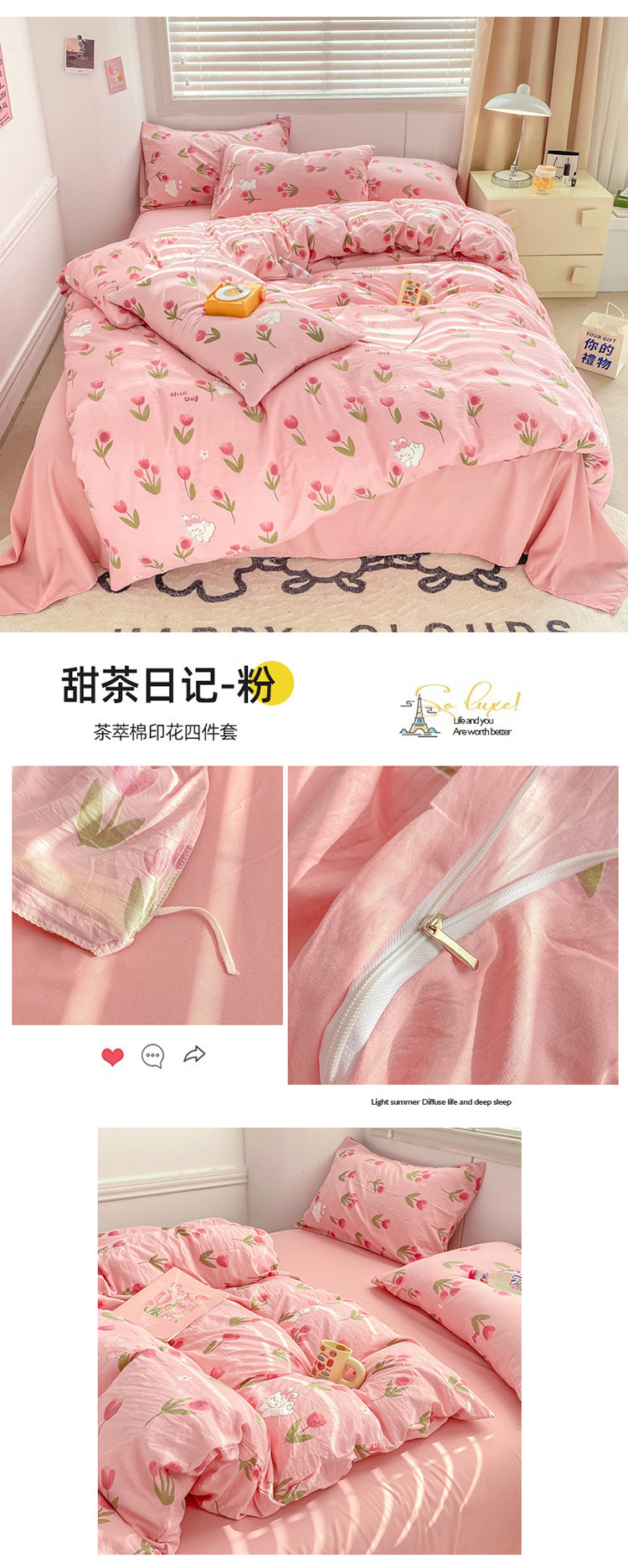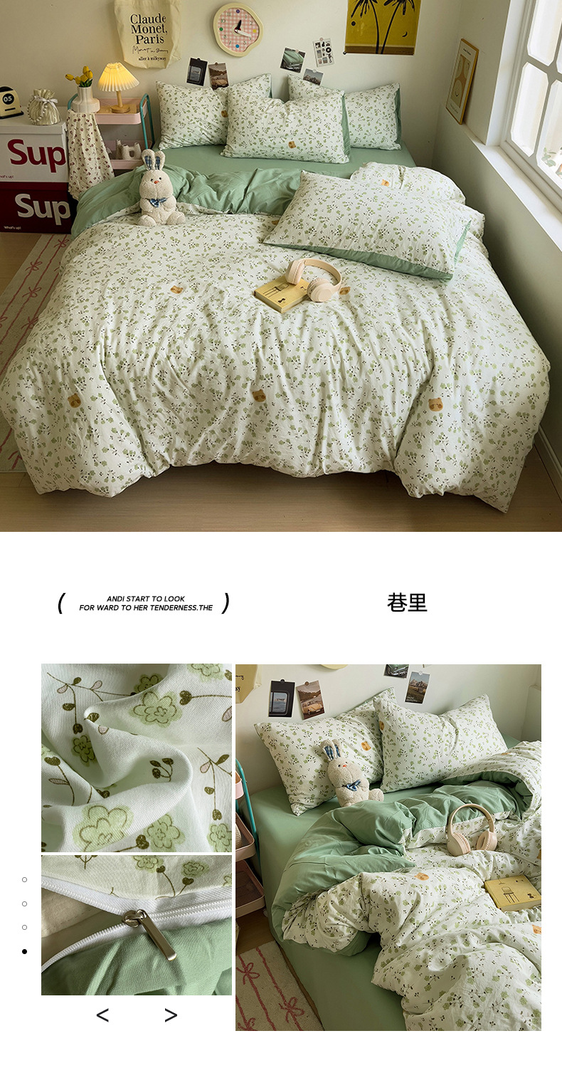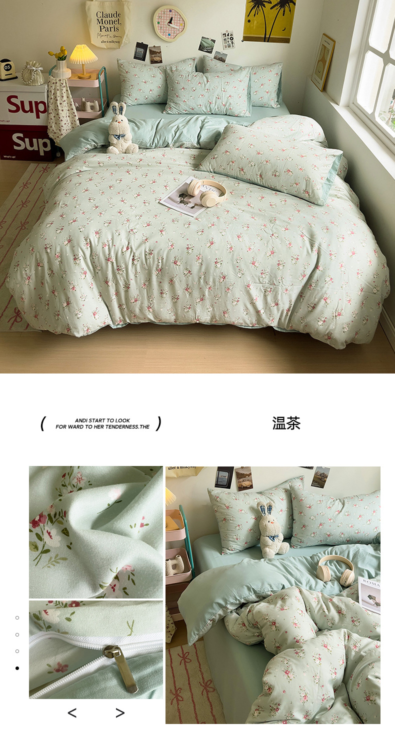 商品属性 [克重] 500g(不含)以下 [加工定制] 是 [印染工艺] 活性印染 [图案] 卡通动漫,植物花卉 [是否一般纳税人] 是 [材质] 纯棉 [款式] 床单式 [织造工艺] 水洗,印花 [面料支数] 60支 [风格] ins风