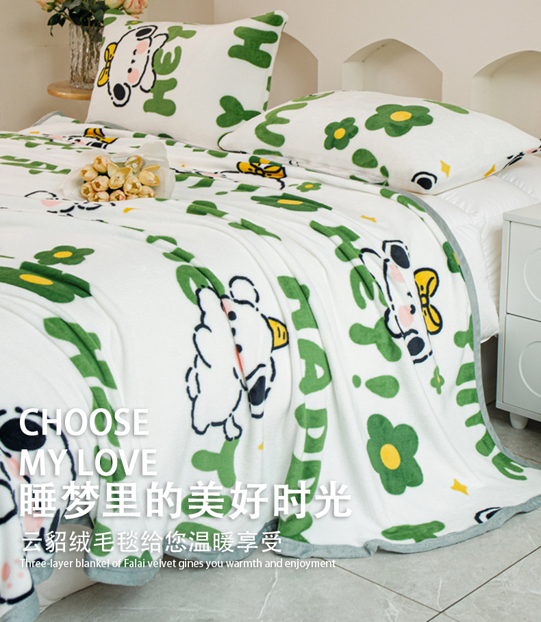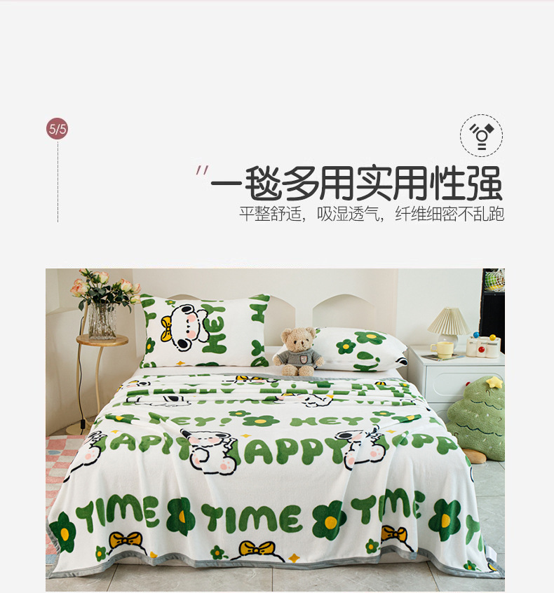 商品属性 [克重] 300g(含)~500g(不含) [加工定制] 是 [图案] 卡通动漫,植物花卉 [是否一般纳税人] 否 [材质] 聚酯纤维(涤纶) [毯类型] 法兰绒毯 [适用季节] 四季通用 [风格] 卡通