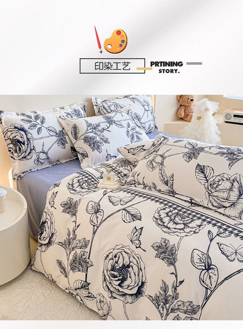 商品属性 [克重] 500g(不含)以下 [加工定制] 是 [印染工艺] 活性印染 [图案] 几何图案,卡通动漫,植物花卉,其他 [是否一般纳税人] 是 [材质] 纯棉 [款式] 床单式 [织造工艺] 其他 [面料密度] 133x72 [面料支数] 40支 [风格] ins风