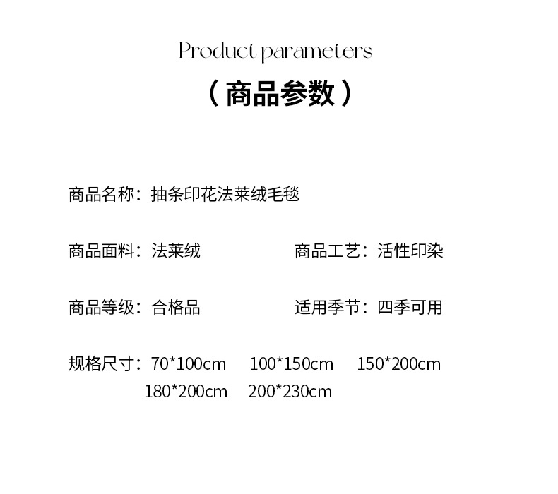 商品属性 [克重] 300g(含)~500g(不含) [加工定制] 是 [图案] 海洋 [是否一般纳税人] 是 [材质] 聚酯纤维(涤纶) [毯类型] 法兰绒毯 [适用季节] 四季通用 [风格] ins风