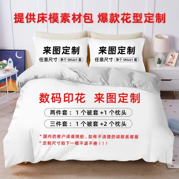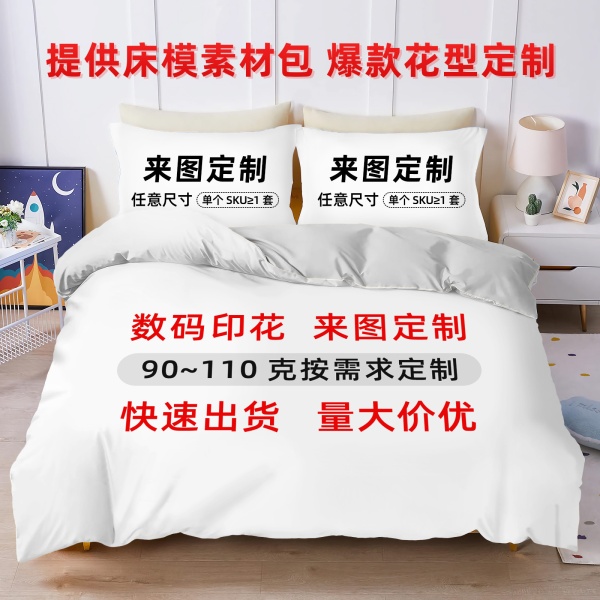 商品属性 [产品等级] 合格品 [克重] 90 [加工定制] 是 [印染工艺] 数码印花 [图案] 其他/other [是否一般纳税人] 否 [是否支持一件代发] 支持 [是否跨境出口专供货源] 否 [材质] 化纤 [款式] 床罩式 [织造工艺] 磨毛 [适用床尺寸] 2.2m(7英尺)床 [颜色分类] 花色 [风格] 卡通