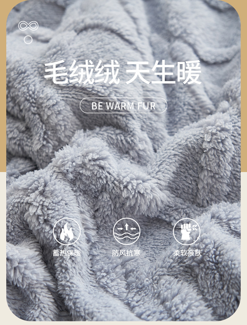 商品属性 [克重] 300g(含)~500g(不含) [加工定制] 否 [图案] 纯色 [是否一般纳税人] 否 [材质] 聚酯纤维(涤纶) [毯类型] 珊瑚绒毯 [适用季节] 冬季 [风格] ins风