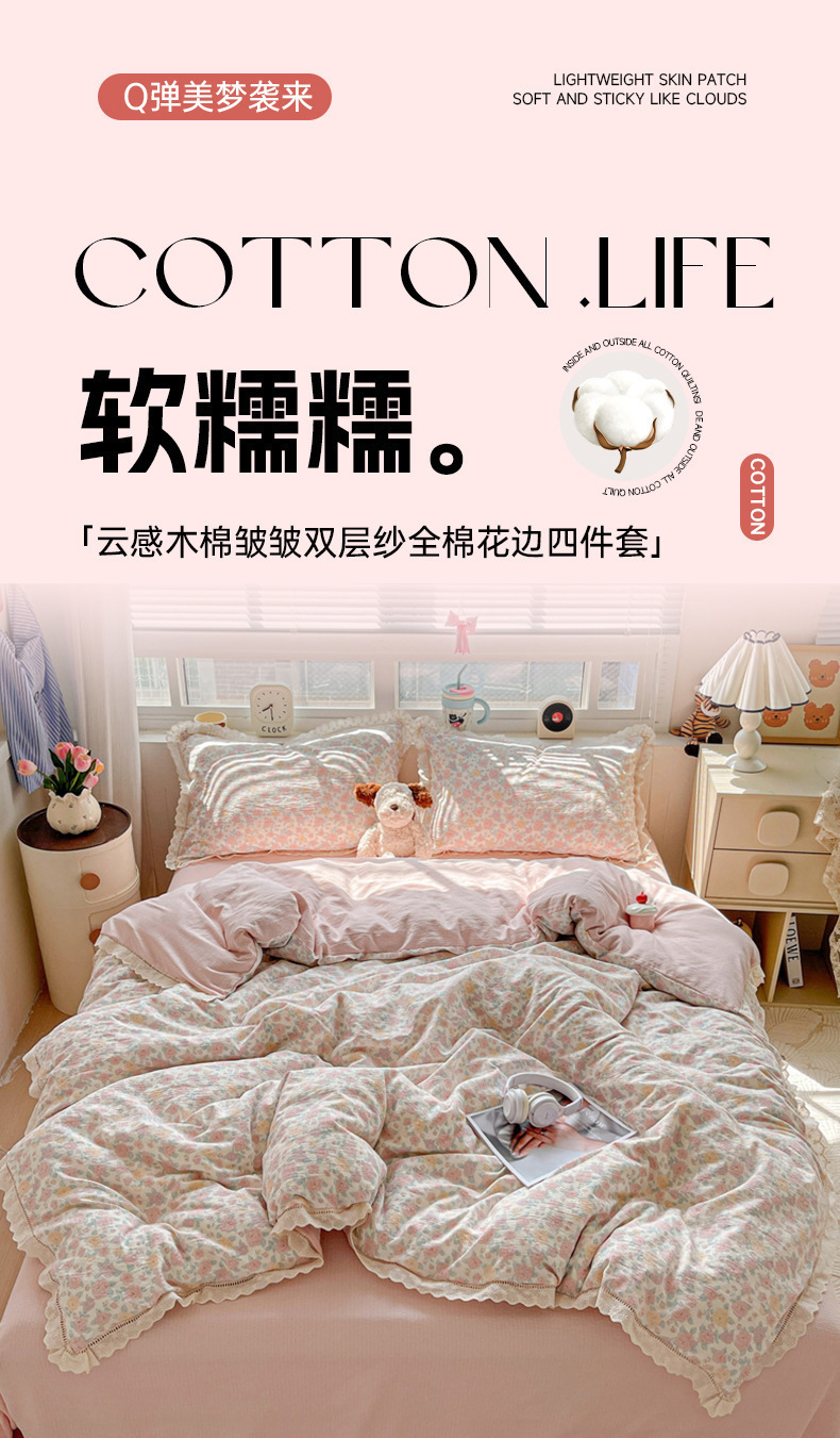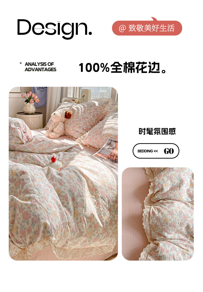 商品属性 [克重] 1000g(含)~1500g(不含) [加工定制] 是 [印染工艺] 活性印染 [图案] 几何图案,卡通动漫,植物花卉 [是否一般纳税人] 否 [材质] 纯棉 [款式] 床单式 [织造工艺] 印花 [面料支数] 60支 [风格] ins风