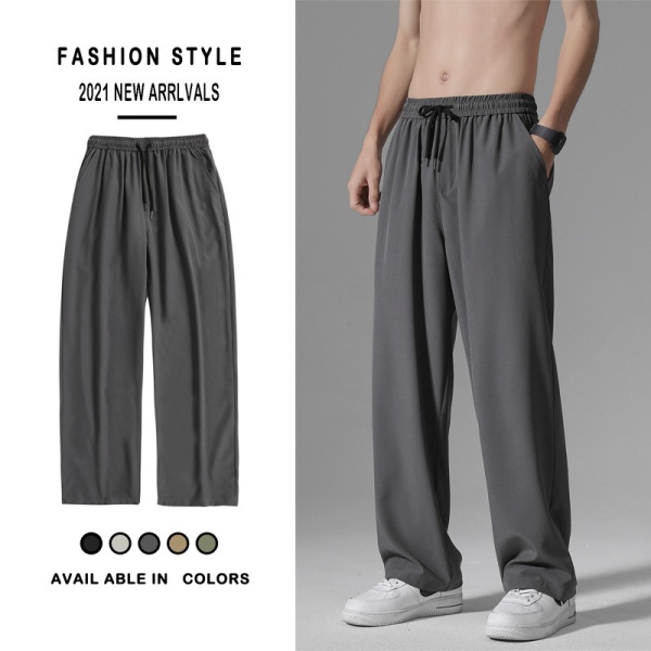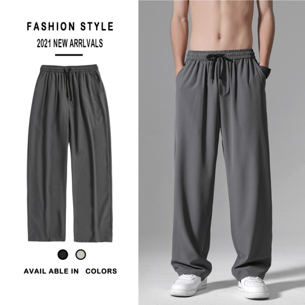 男士裤子夏季薄款潮流百搭宽松休闲长裤阔腿直筒垂感空调冰丝西裤