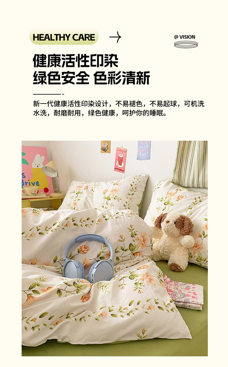 商品属性 [克重] 800g(含)~1000g(不含) [加工定制] 否 [印染工艺] 活性印染 [图案] 植物花卉,萌趣动物 [是否一般纳税人] 否 [材质] 化纤 [款式] 床单式 [织造工艺] 印花 [风格] 卡通