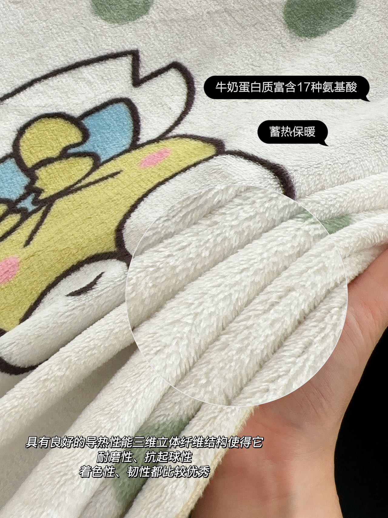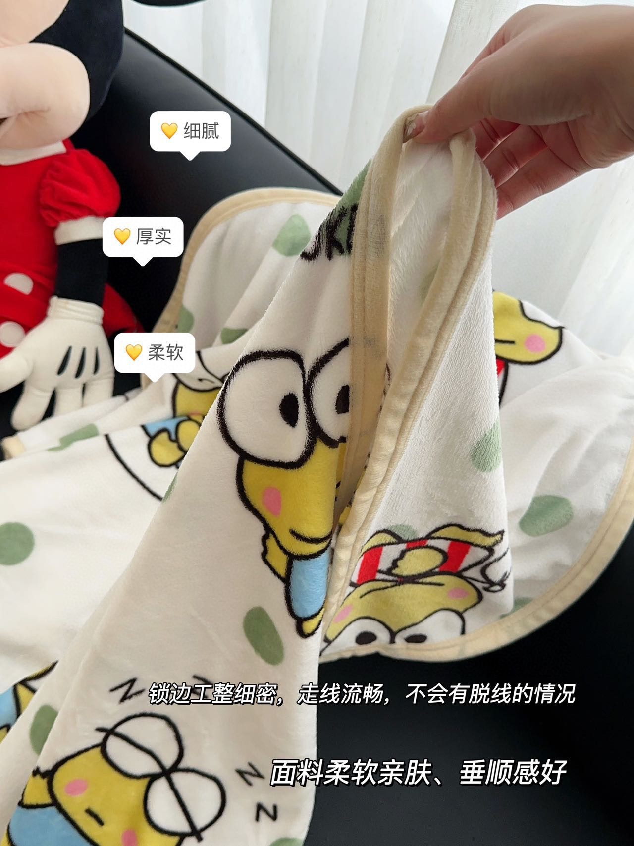 商品属性 [克重] 1000g(含)~1500g(不含) [加工定制] 是 [图案] 卡通动漫 [是否一般纳税人] 否 [材质] 牛奶绒 [毯类型] 牛奶绒毯 [适用季节] 四季通用 [风格] 卡通