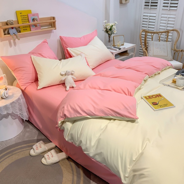 商品属性 [件数] 4件 [加工定制] 否 [印染工艺] 活性印染 [图案] 纯色 [材质] 化纤 [款式] 床单式 [织造工艺] 平纹 [面料次成分] 聚酯纤维(涤纶) [面料次成分含量] 1 [风格] 现代简约