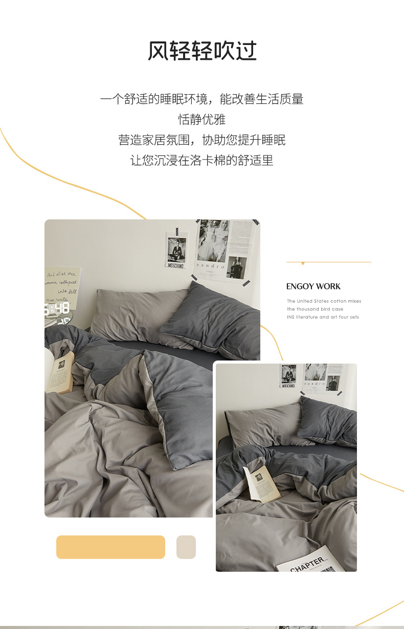 商品属性 [克重] 500g(不含)以下 [加工定制] 否 [印染工艺] 活性印染 [图案] 纯色 [是否一般纳税人] 否 [材质] 水洗棉 [款式] 床单式 [织造工艺] 水洗 [风格] ins风