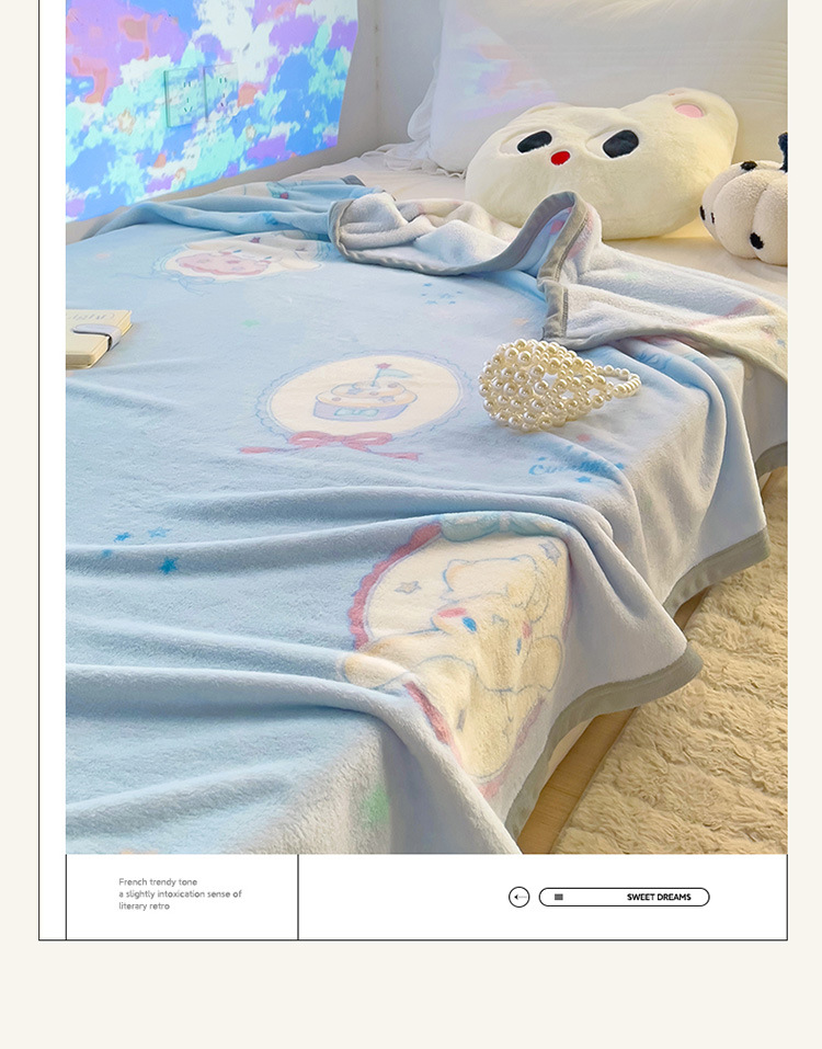 商品属性 [产品等级] A类 [克重] 500g(含)~800g(不含) [加工定制] 否 [图案] 卡通动漫 [是否一般纳税人] 否 [材质] 牛奶绒 [毯类型] 牛奶绒毯 [适用季节] 四季通用 [风格] 卡通