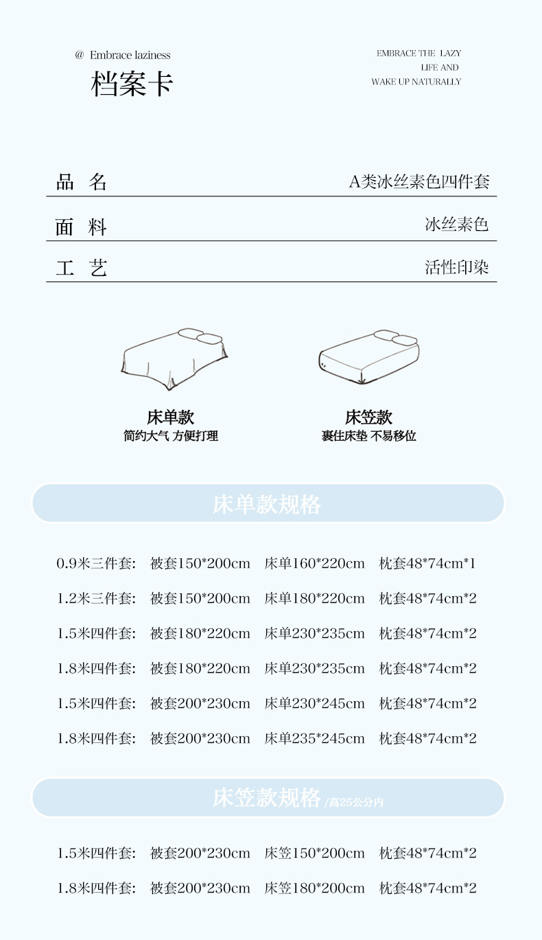 商品属性 [克重] 2000g(含)~2500g(不含) [加工定制] 否 [印染工艺] 活性印染 [图案] 纯色 [是否一般纳税人] 否 [材质] 化纤 [款式] 床单式+床笠式 [织造工艺] 斜纹 [风格] 现代简约