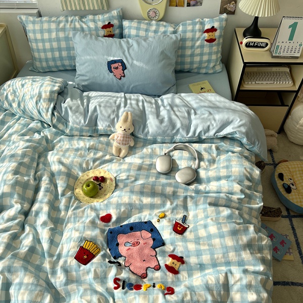 商品属性 [克重] 2500g(含)-3000g(不含) [加工定制] 是 [印染工艺] 半活性印染 [图案] 卡通动漫 [是否一般纳税人] 是 [材质] 纯棉 [款式] 床单式 [织造工艺] 绣花 [面料密度] 133x72 [面料支数] 40支 [风格] 卡通