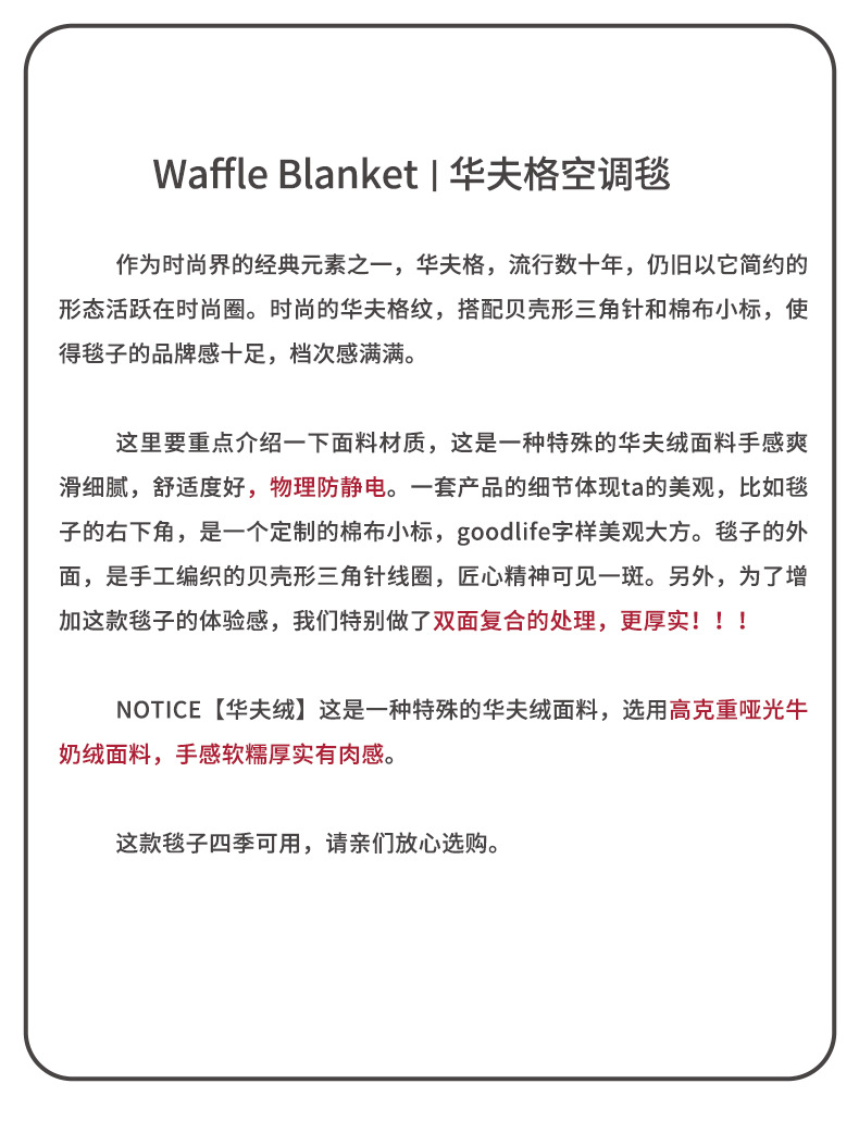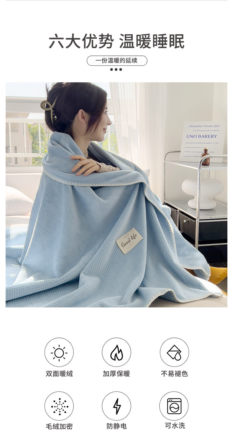 商品属性 [克重] 300g(不含)以下 [加工定制] 否 [图案] 纯色 [是否一般纳税人] 是 [材质] 聚酯纤维(涤纶) [毯类型] 牛奶绒毯 [适用季节] 四季通用 [风格] 现代简约