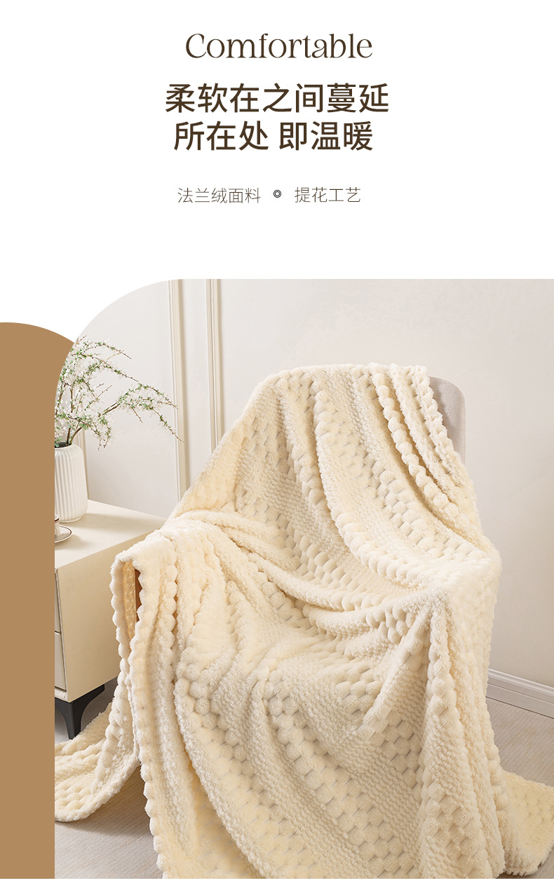 商品属性 [克重] 300g(不含)以下 [加工定制] 是 [图案] 纯色,植物花卉 [是否一般纳税人] 否 [材质] 聚酯纤维(涤纶) [毯类型] 法兰绒毯 [适用季节] 四季通用 [风格] 现代简约