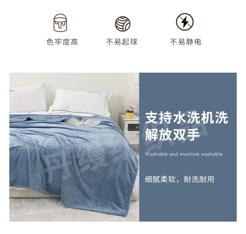 商品属性 [克重] 1500g(含)~2000g(不含) [加工定制] 是 [图案] 纯色 [床尺寸] 180cmX(范围200-220)cm [是否一般纳税人] 是 [材质] 聚酯纤维(涤纶) [毯类型] 珊瑚绒毯 [色牢度] 4 [适用季节] 四季通用 [面料材质] 涤纶 [风格] 现代简约