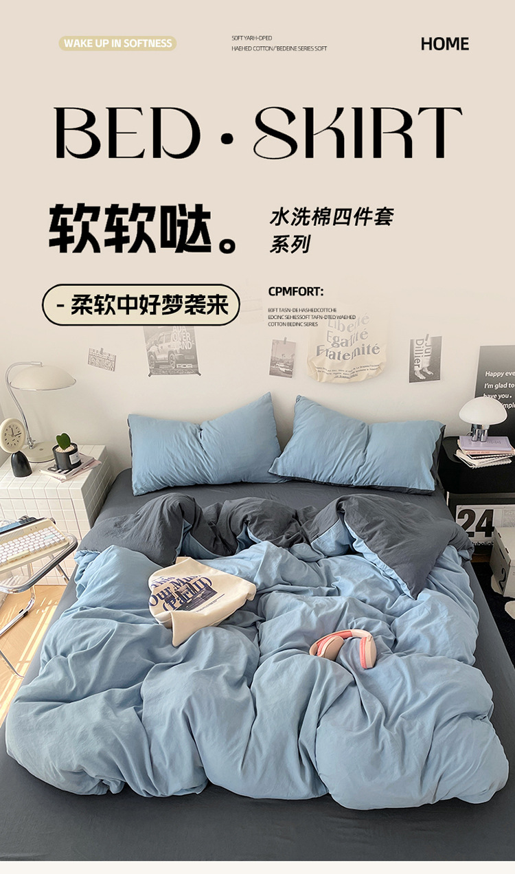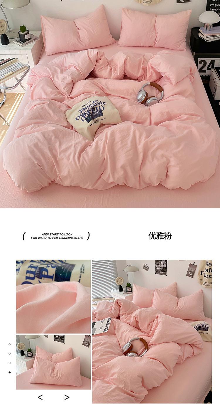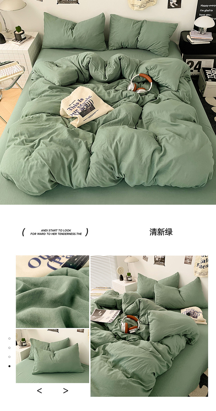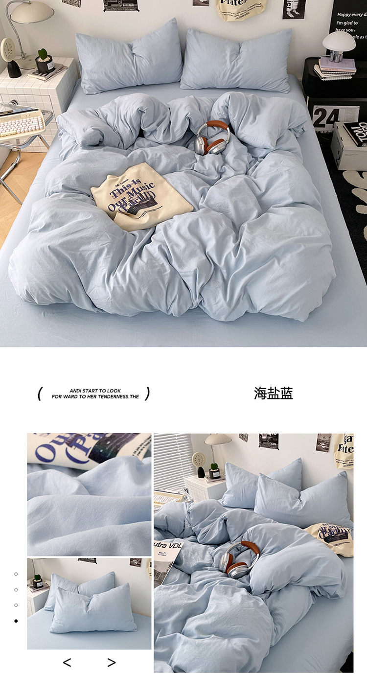 商品属性 [克重] 500g(不含)以下 [加工定制] 是 [印染工艺] 活性印染 [图案] 纯色 [是否一般纳税人] 是 [材质] 长绒棉 [款式] 床单式 [织造工艺] 水洗,褶皱,绗缝 [面料支数] 80支 [风格] ins风