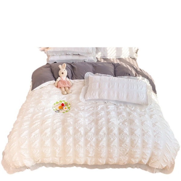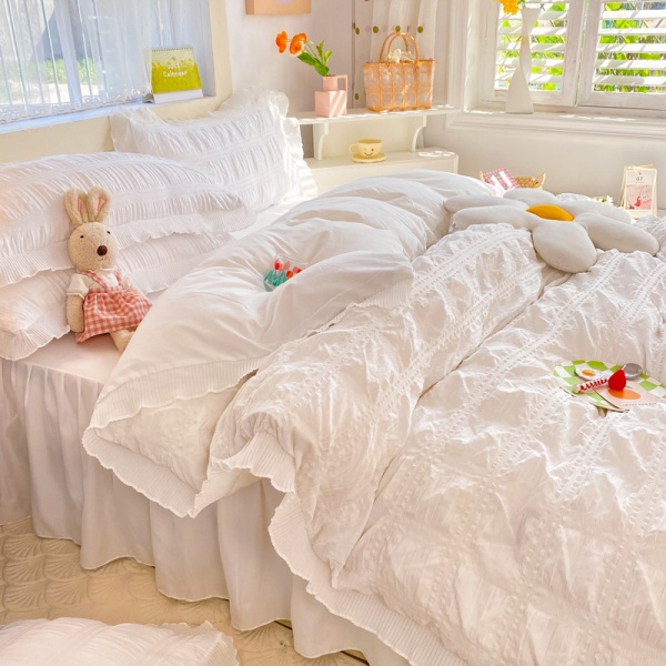 商品属性 [克重] 800g(含)~1000g(不含) [加工定制] 是 [印染工艺] 活性印染 [图案] 纯色 [是否一般纳税人] 是 [材质] 水洗棉 [款式] 床单式 [织造工艺] 水洗,褶皱 [风格] 公主风