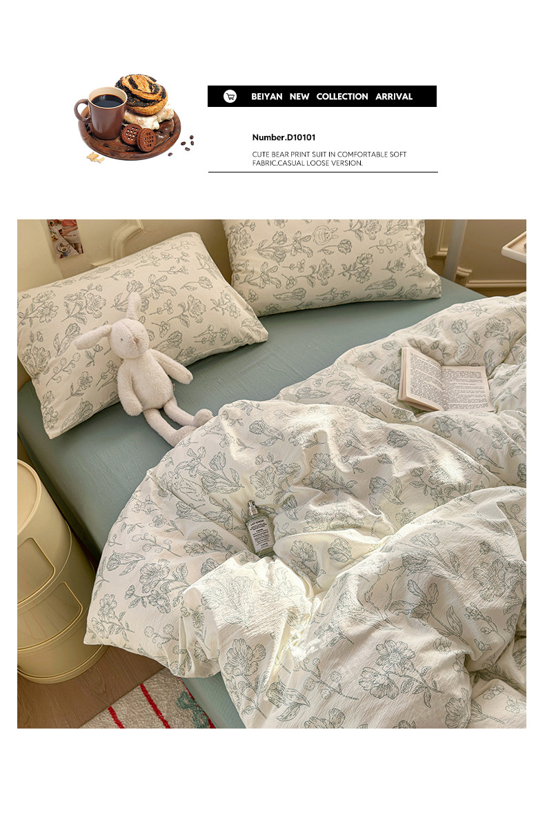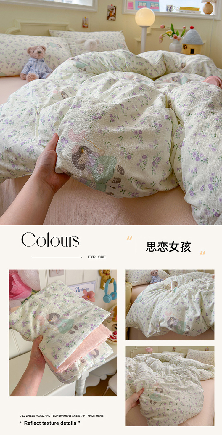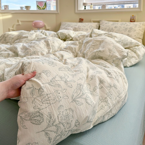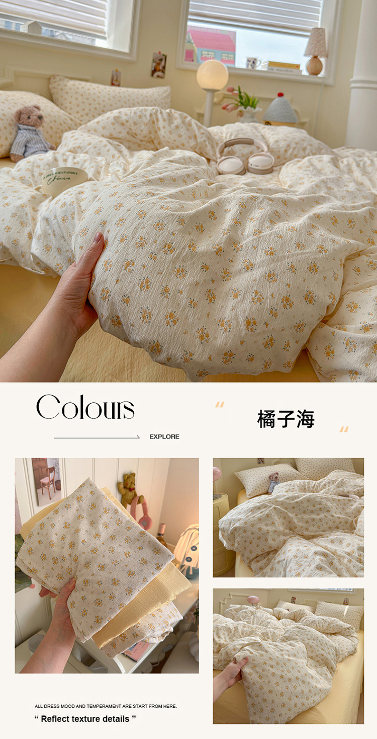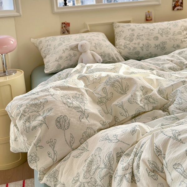 商品属性 [克重] 1000g(含)~1500g(不含) [加工定制] 是 [印染工艺] 活性印染 [图案] 植物花卉 [是否一般纳税人] 是 [材质] 木棉 [款式] 床单式 [织造工艺] 印花 [风格] 小清新