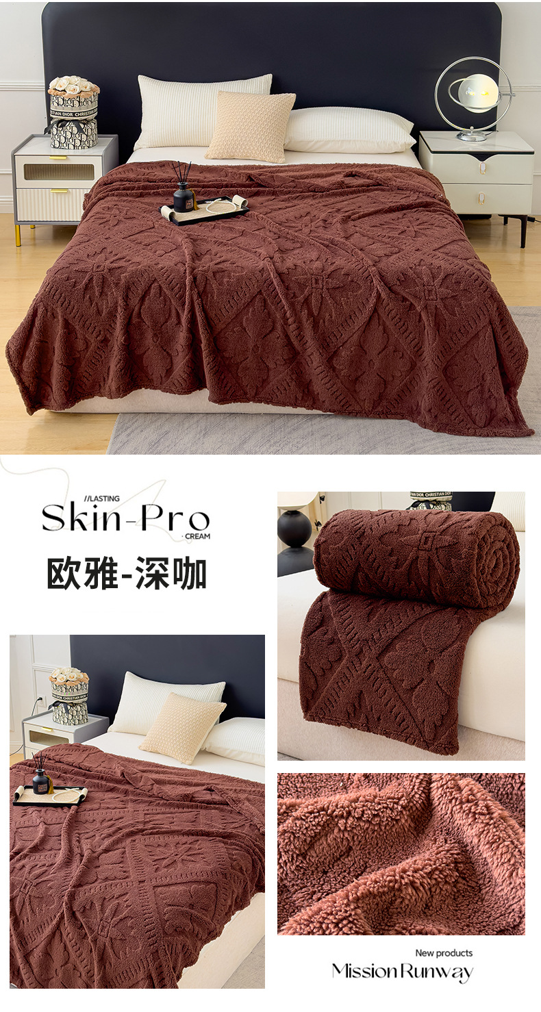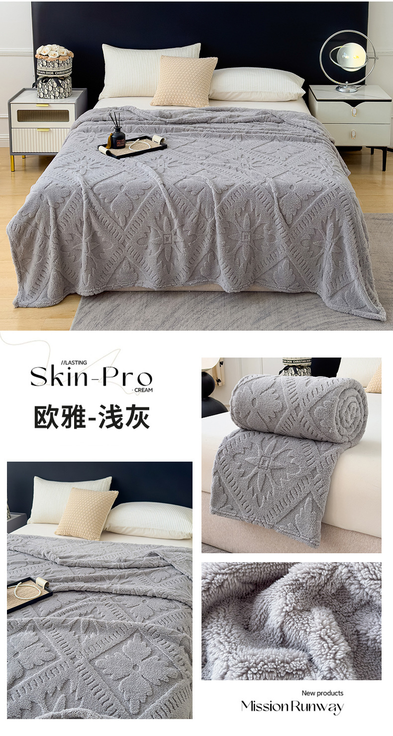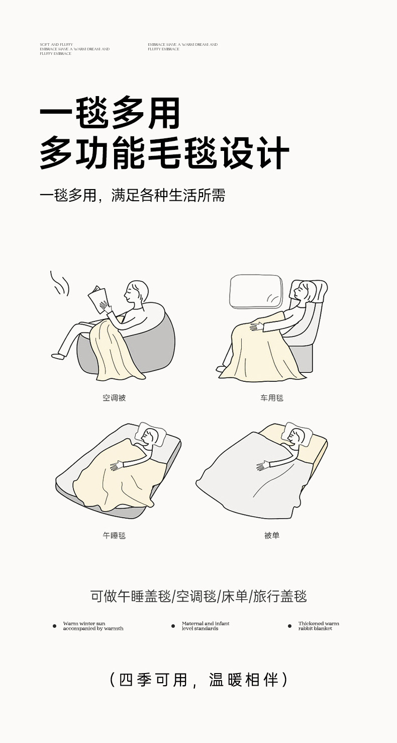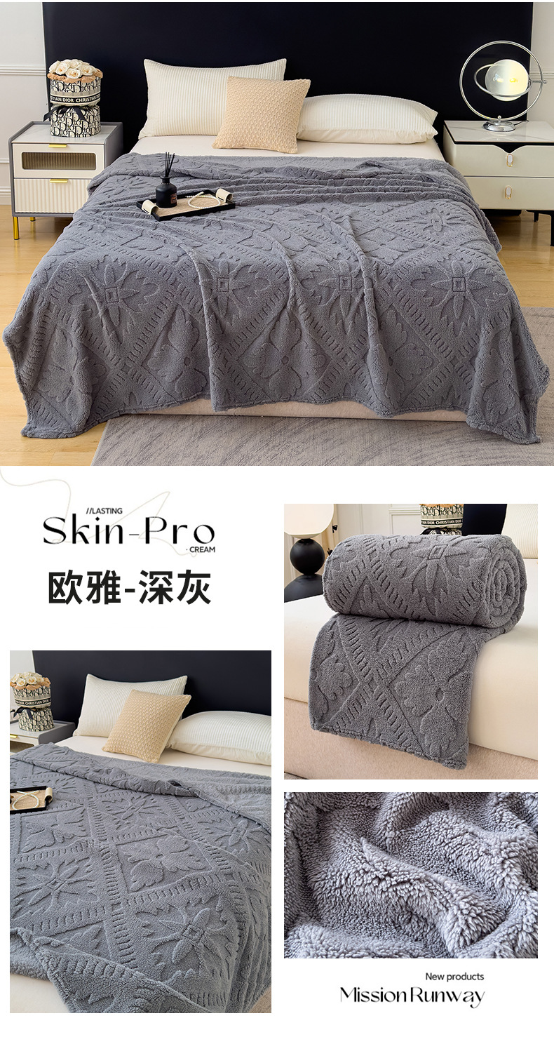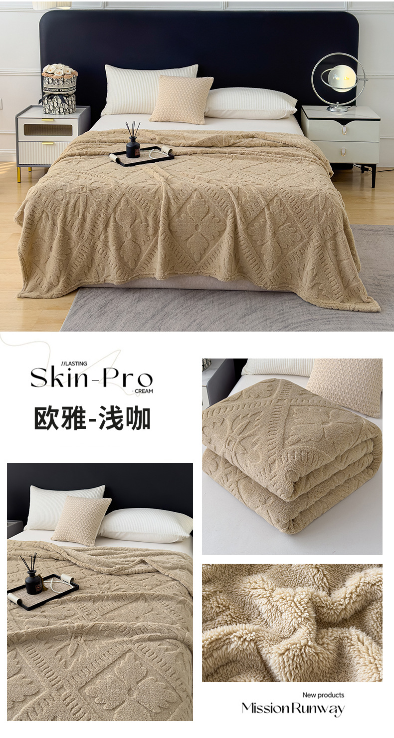 商品属性 [克重] 300g(不含)以下 [图案] 纯色 [是否一般纳税人] 否 [材质] 聚酯纤维(涤纶) [毯类型] 羊毛羊绒毯 [适用季节] 四季通用 [风格] 现代简约