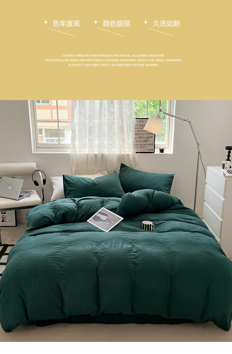 商品属性 [克重] 2000g(含)~2500g(不含) [加工定制] 是 [印染工艺] 活性印染 [图案] 纯色 [是否一般纳税人] 否 [材质] 水洗棉 [款式] 床单式 [织造工艺] 水洗,斜纹,绗缝 [风格] 北欧
