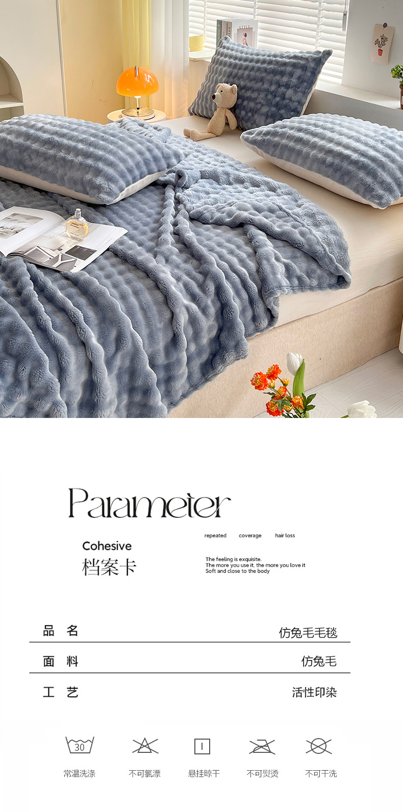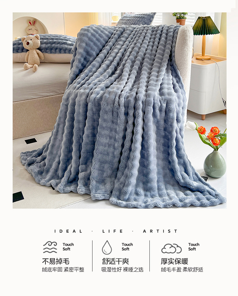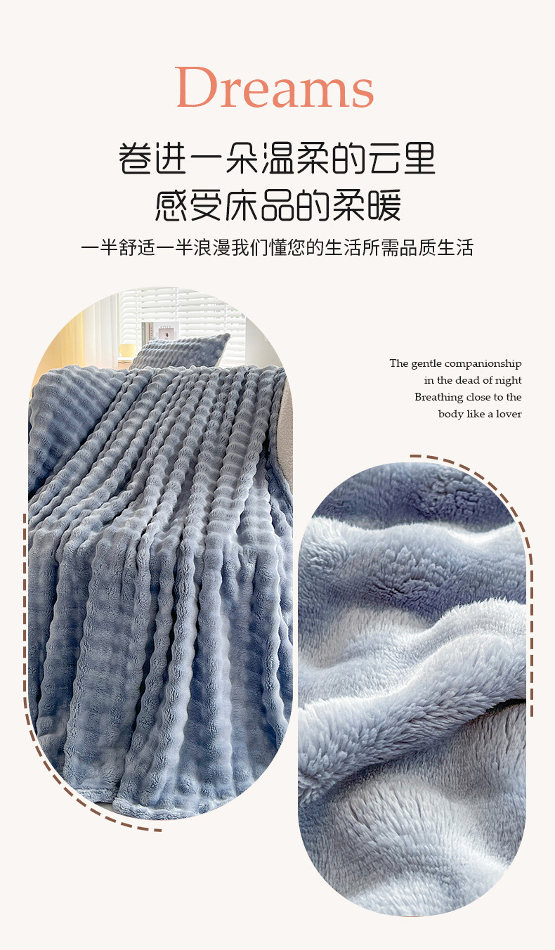 商品属性 [克重] 1000g(含)~1500g(不含) [加工定制] 是 [图案] 纯色 [是否一般纳税人] 否 [材质] 聚酯纤维(涤纶) [毯类型] 法兰绒毯 [适用季节] 四季通用 [风格] 北欧