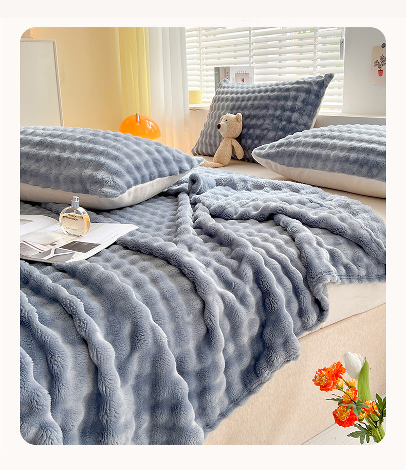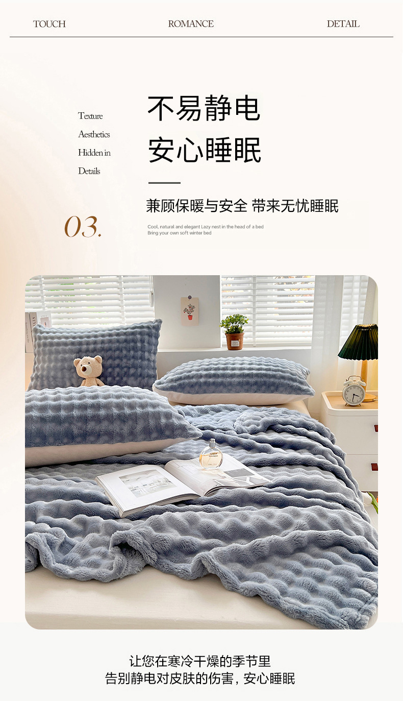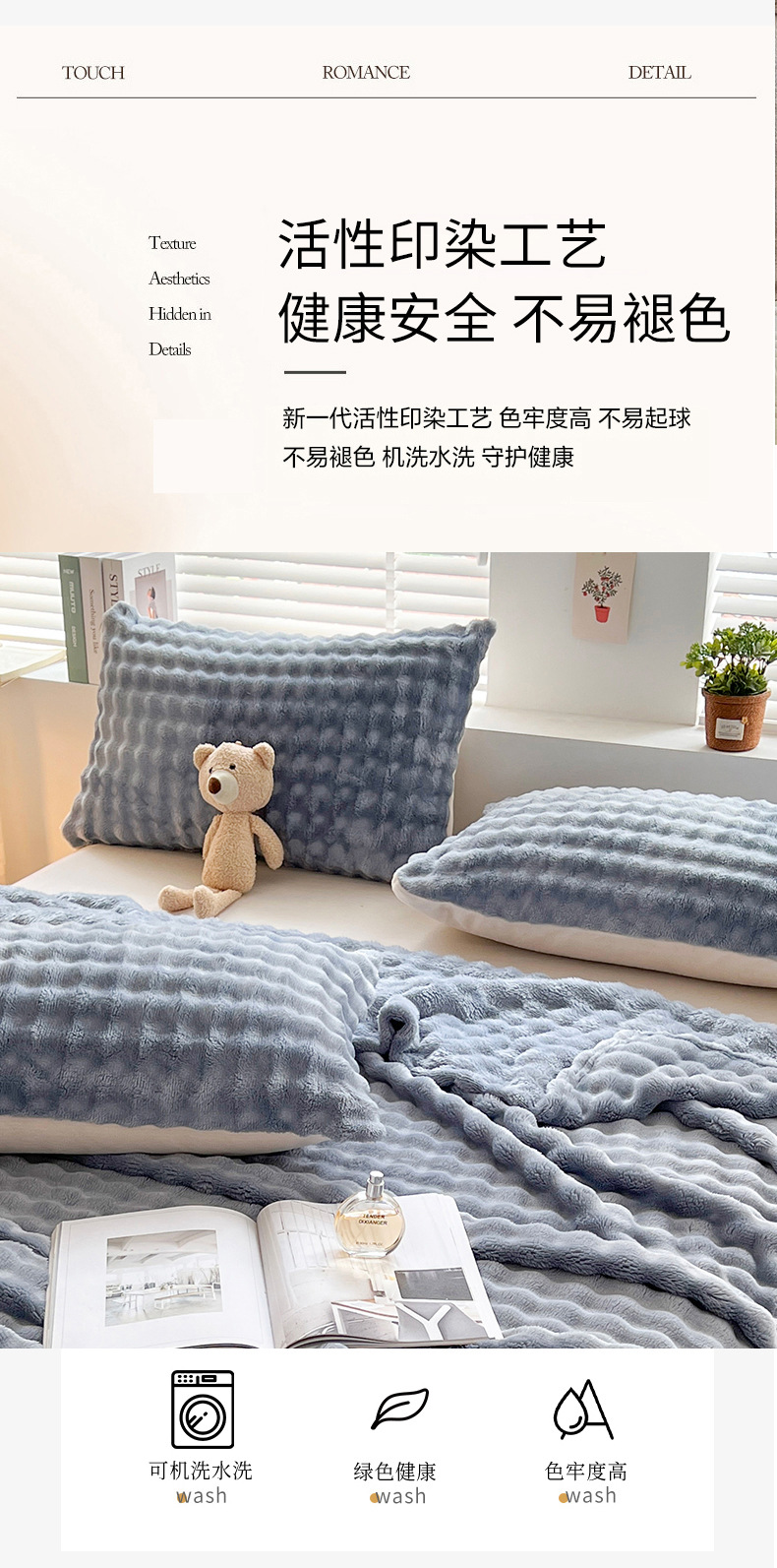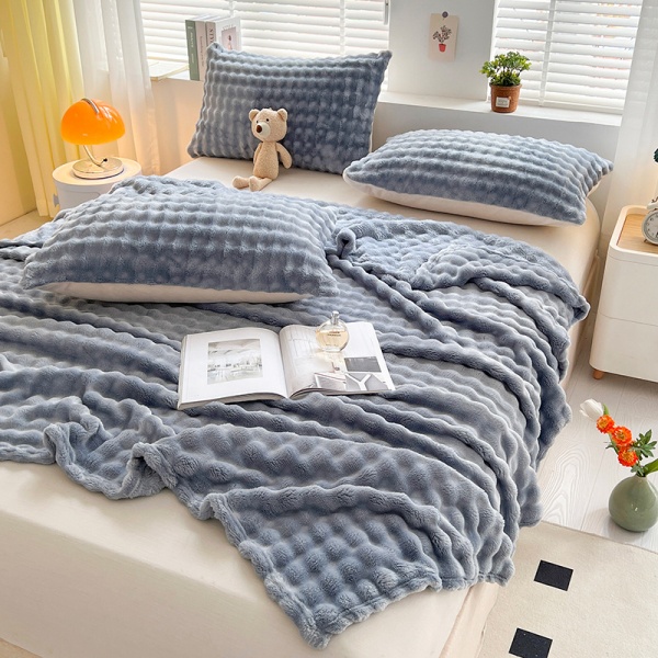 商品属性 [克重] 1000g(含)~1500g(不含) [加工定制] 是 [图案] 纯色 [是否一般纳税人] 否 [材质] 聚酯纤维(涤纶) [毯类型] 法兰绒毯 [适用季节] 四季通用 [风格] 北欧