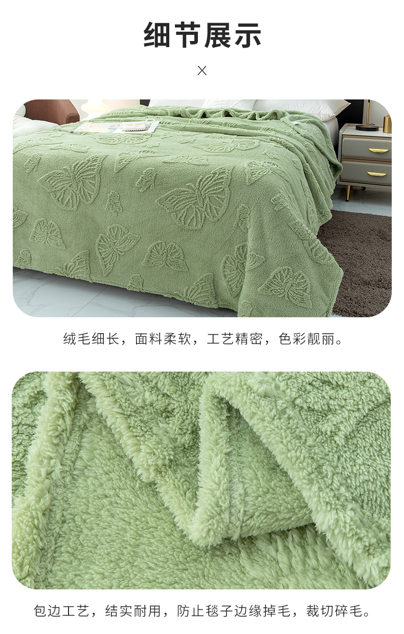 商品属性 [克重] 300g(含)~500g(不含) [加工定制] 否 [图案] 纯色 [是否一般纳税人] 是 [材质] 聚酯纤维(涤纶) [毯类型] 珊瑚绒毯 [适用季节] 春秋 [风格] 现代简约