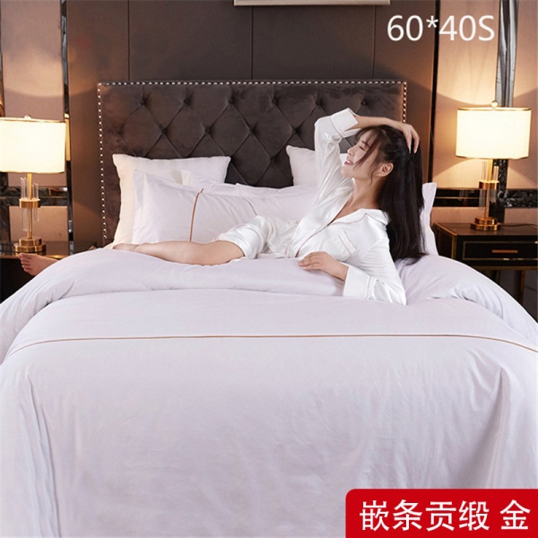 商品属性 [主要下游平台] ebay,亚马逊,wish,速卖通,独立站,LAZADA [主要销售地区] 非洲,欧洲,南美,东南亚,北美,东北亚,中东 [产品等级] 合格品 [加工定制] 是 [印染工艺] 活性印染 [图案] 纯色 [床品套件] 四件套 [是否一般纳税人] 是 [是否支持一件代发] 支持 [是否跨境出口专供货源] 是 [有可授权的自有品牌] 是 [材质] 纯棉 [款式] 全棉60*40支嵌条贡缎173*124(商务主题酒店) [织造工艺] 喷气 [规格尺寸] 1m-2m [面料支数] 60支 [风格] 简约