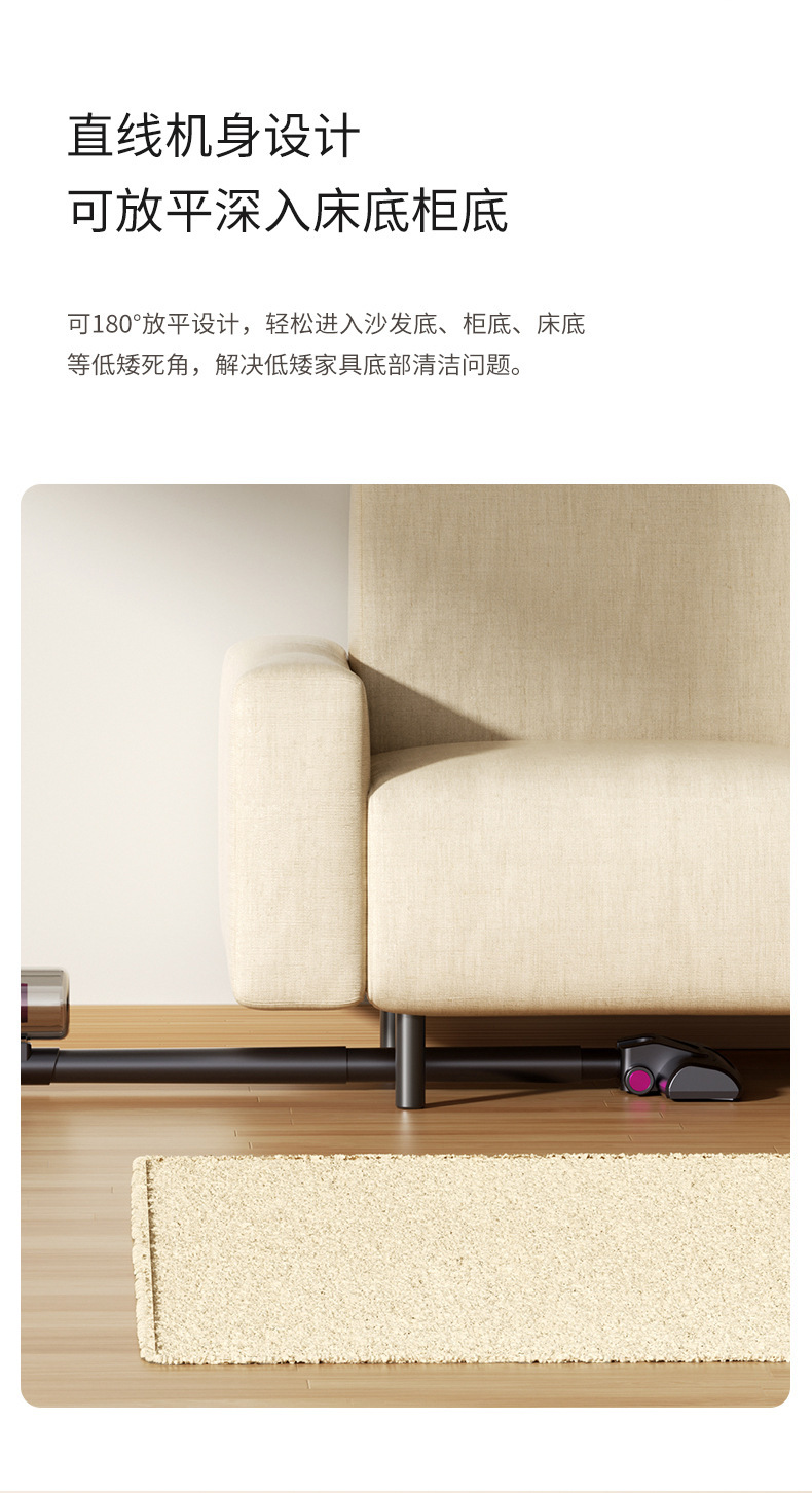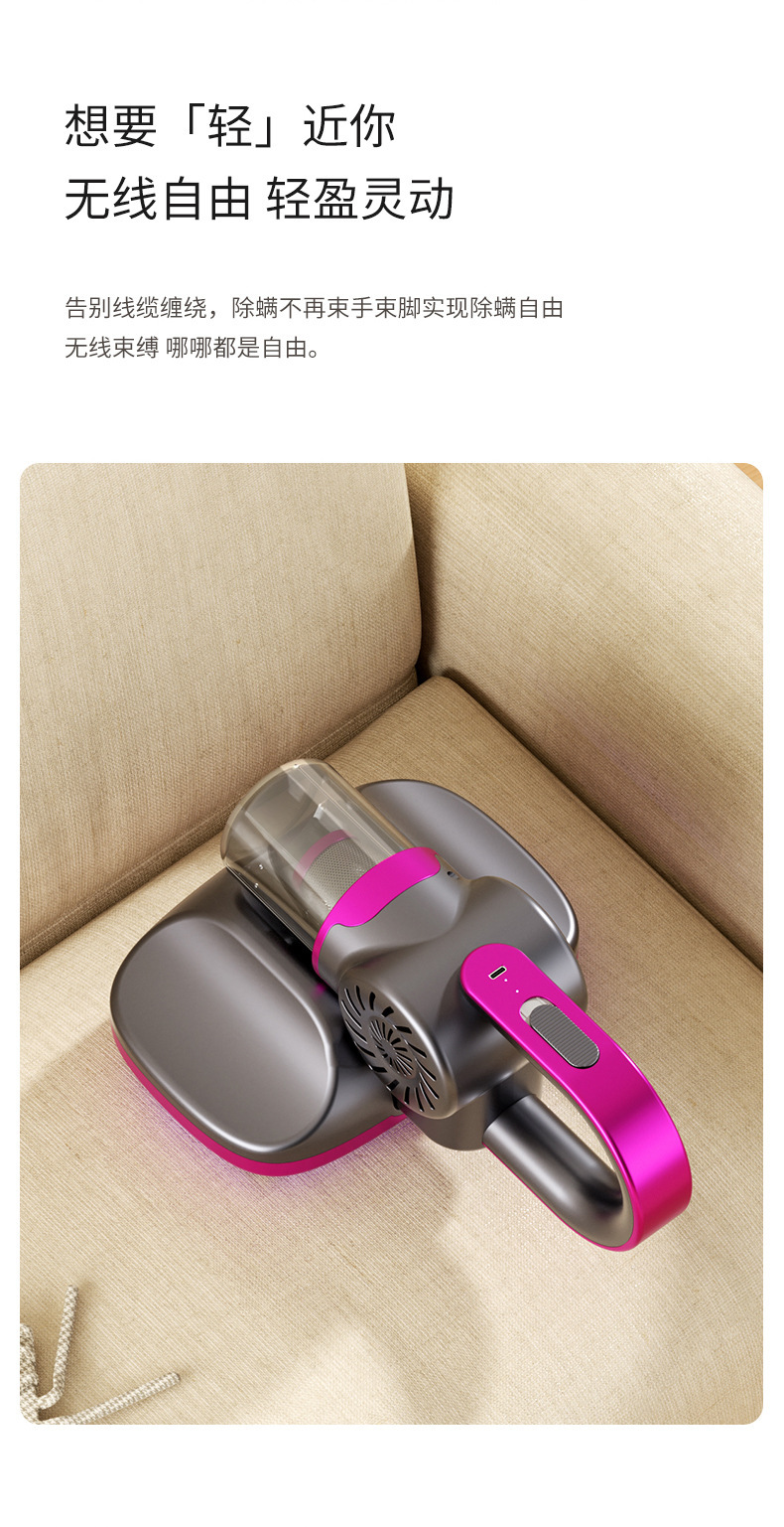 商品属性 [储尘类型] 尘盒/尘桶 [功能] 杀菌,紫外线除螨 [吸口宽度] 20-25cm(含) [噪音] 36dB以下 [尘杯容积] 0.4L以上 [拍打方式] 无拍打 [操作方式] 机械式 [是否有线] 无线 [特殊吸嘴类型] 洁旋风吸尘嘴 [电源线长度] 无线 [额定电压] ≤36V [风格] 简约风
