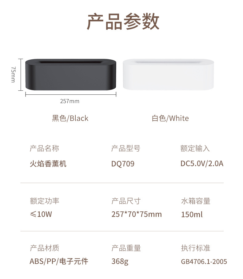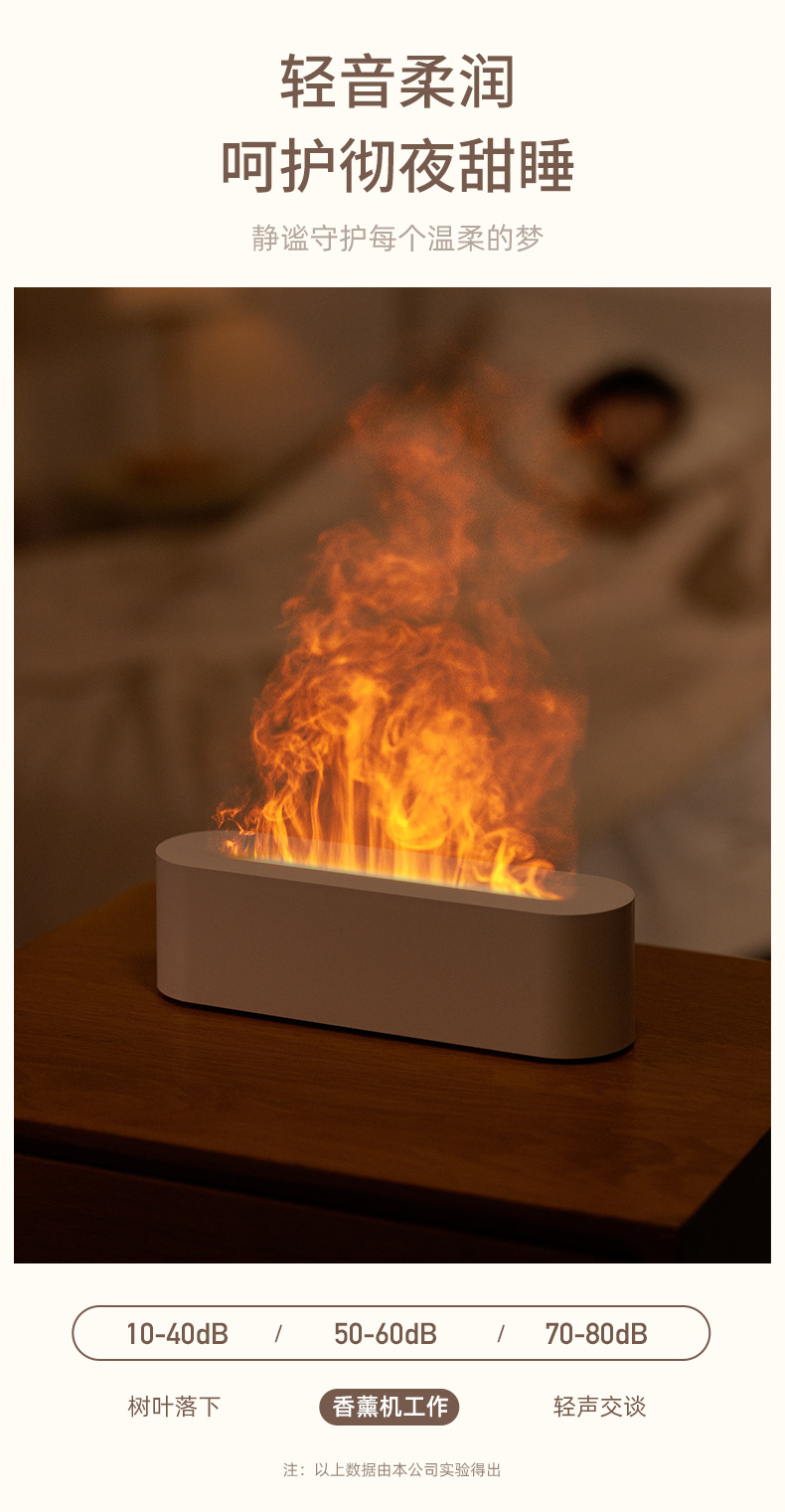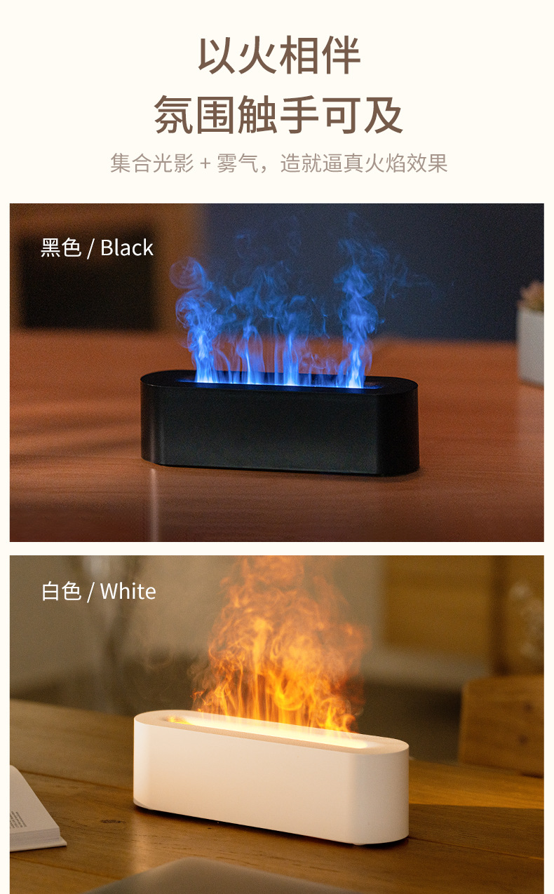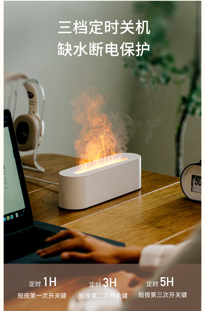 产品卖点:七彩仿真火焰;精油香薰细腻雾化;3档定时关机;简约外观,经典黑白双色可选 ;无水断电保护