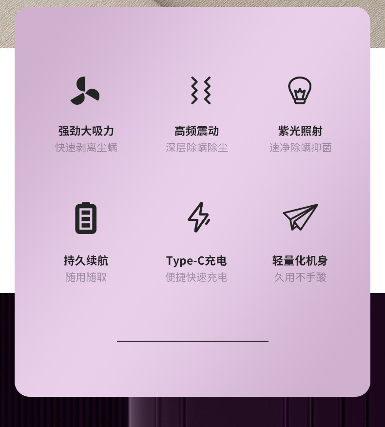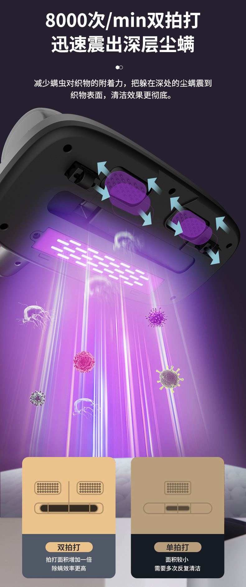商品属性 [储尘类型] 尘盒/尘桶 [功能] 紫外线除螨 [噪音] 36dB以下 [拍打方式] 触点拍打 [操作方式] 机械式 [是否有线] 无线 [特殊吸嘴类型] 防静电地面刷 [电源线长度] 无线 [额定电压] ≤36V [风格] 日韩风