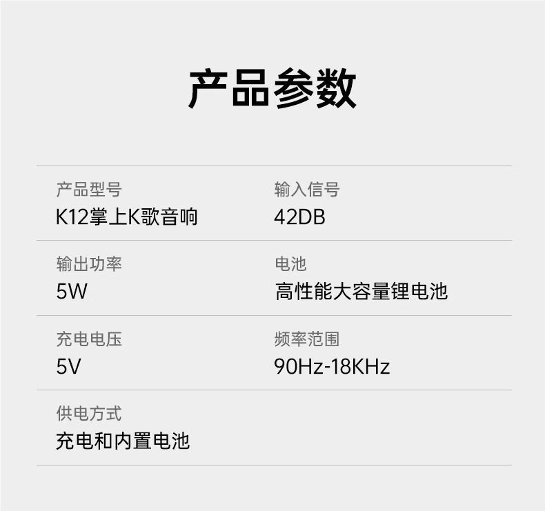 商品属性 [上市时间] 2023-06-06 [主要销售地区] 其他 [产品净重] 其他 [信噪比] ≥70db [售后服务] 其他 [喇叭数] 其他 [外观尺寸] 其他 [是否专利货源] 否 [是否内置电池] 无电池 [是否外贸] 否 [是否跨境出口专供货源] 否 [有效距离] 其他 [电源方式] 其他 [箱体材质] ABS [蓝牙版本] 2.0 [连接方式] 蓝牙连接 [适用场景] 其他 [防水等级] IPX 7 [频响范围] 100HZ-20KHZ [额定功率] 其他 [额定电压] 其他
