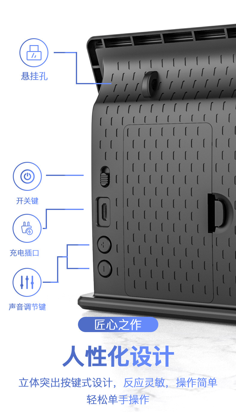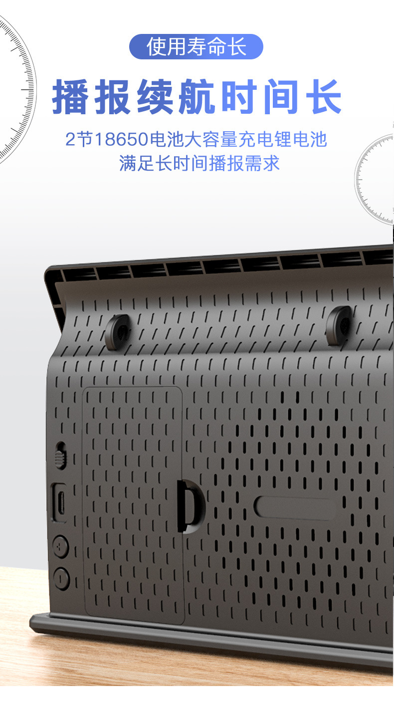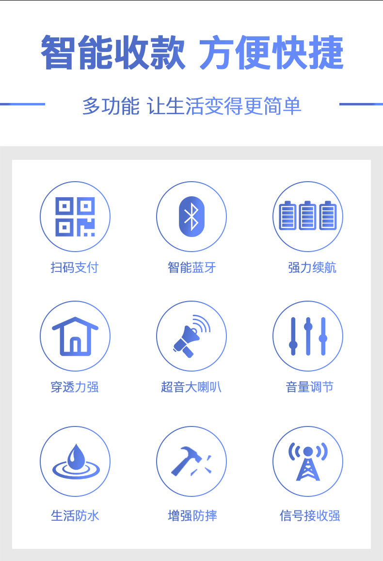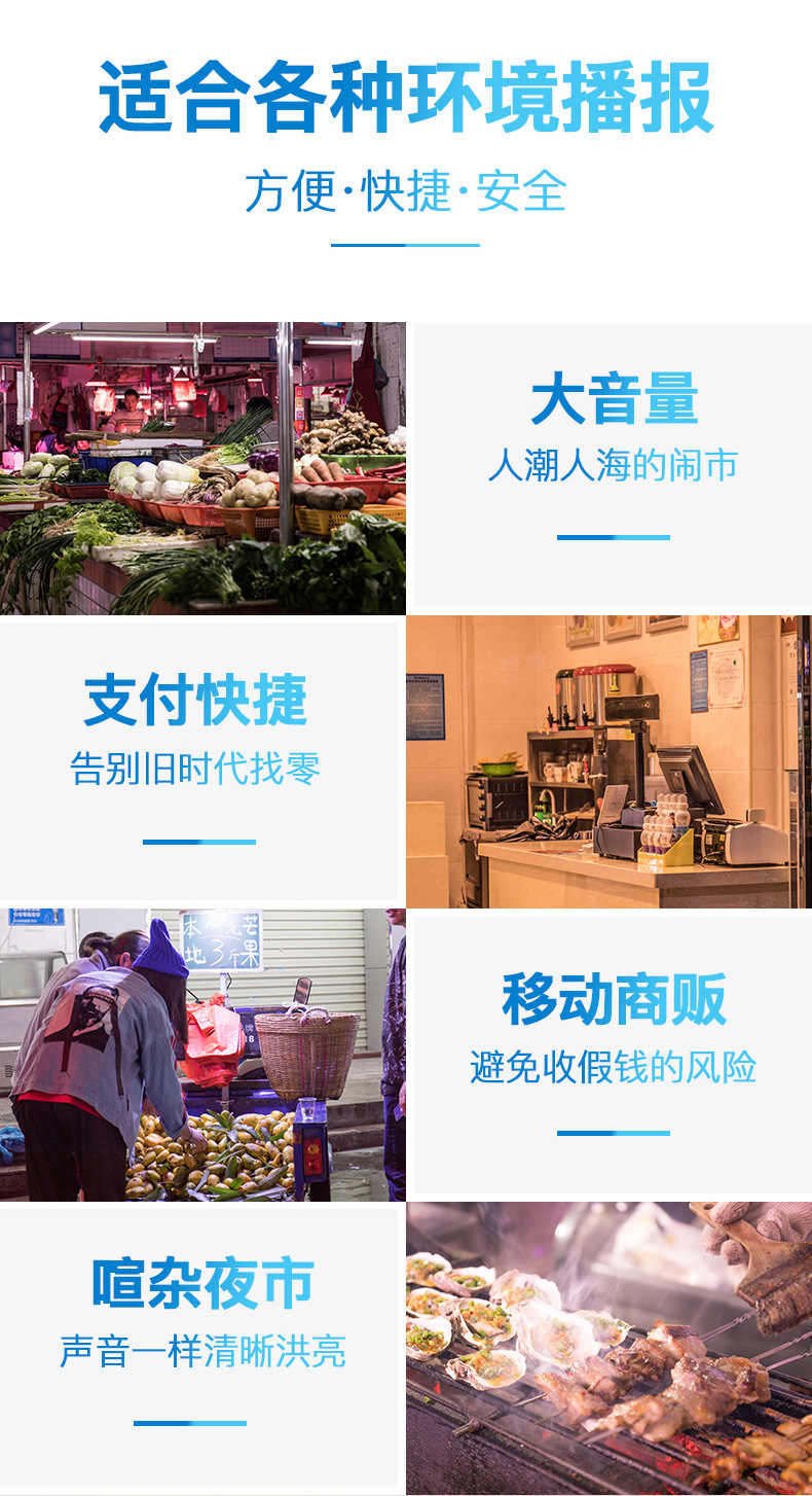 商品属性 [上市时间] 2020 [主要销售地区] 日韩,非洲,韩国,日本,欧洲,南美,东南亚,北美,东北亚,中东,拉丁美洲,欧美 [产品净重] 0.45KG [信噪比] ≥75dB [内置蓄电池容量] 1000mAh-1200mAh(含) [售后服务] 店铺三包 [喇叭数] 1 [外观尺寸] 142*168*75 [是否专利货源] 否 [是否内置电池] 可拆换电池 [是否外贸] 否 [是否跨境出口专供货源] 否 [有效距离] 10米 [电源方式] USB [箱体材质] ABS [蓝牙版本] 5.0 [连接方式] 蓝牙连接 [适用场景] 桌面 [防水等级] IPX 5 [附加功能] 防摔,语音提示,收钱播报 [频响范围] 100HZ-20KHZ [额定功率] 5 [额定电压] 5