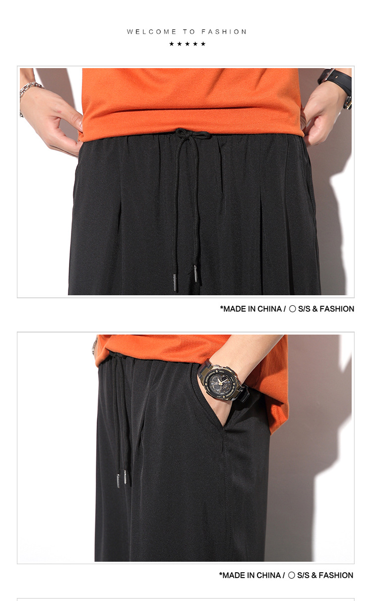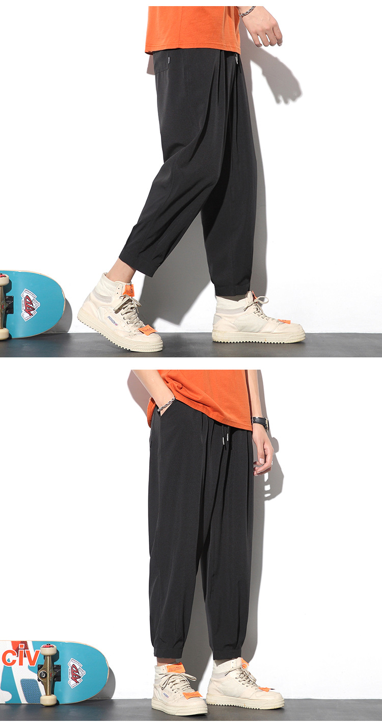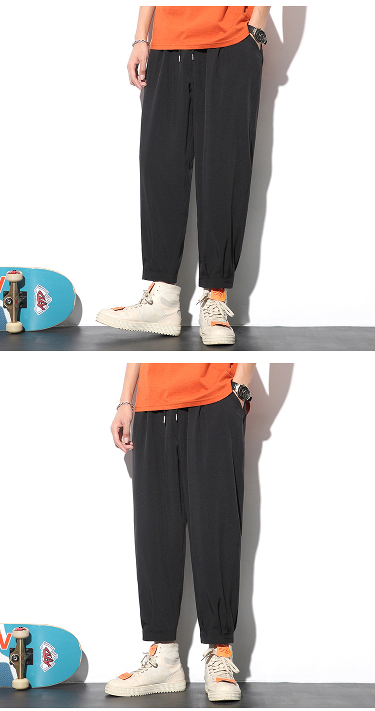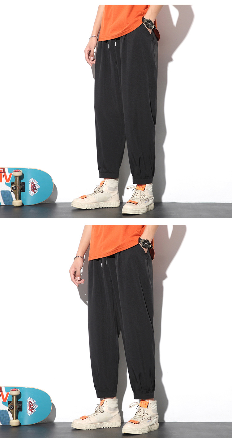 商品属性 [上市年份/季节] 2024年夏季 [主要下游平台] ebay,亚马逊,wish,速卖通,独立站,LAZADA [主要销售地区] 非洲,欧洲,南美,东南亚,北美,东北亚,中东 [主面料成分] 聚酯纤维(涤纶) [主面料成分的含量] 95 [厚薄] 薄款 [原创设计货源] 是 [图案] 纯色 [工艺] 免烫处理 [库存类型] 整单 [弹力] 微弹 [是否库存] 是 [是否有腰带] 有腰带 [是否跨境出口专供货源] 是 [有可授权的自有品牌] 否 [有无质检报告] 否 [材质功能] 透气 [款式] 基本款 [款式细节] 撞色 [淘货类别] 青春流行(18-24岁) [类别] 运动休闲裤 [腰型] 中腰 [裤型] 宽松型 [裤脚口款式] 小脚 [裤长] 九分裤 [裤门襟] 系绳闭襟 [误差范围] 1-2CM [货源类别] 现货 [适合人群] 大码 [适合季节] 夏季 [适用场景] 休闲 [面料] 冰丝 [面料名称] 冰丝 [风格] 韩版